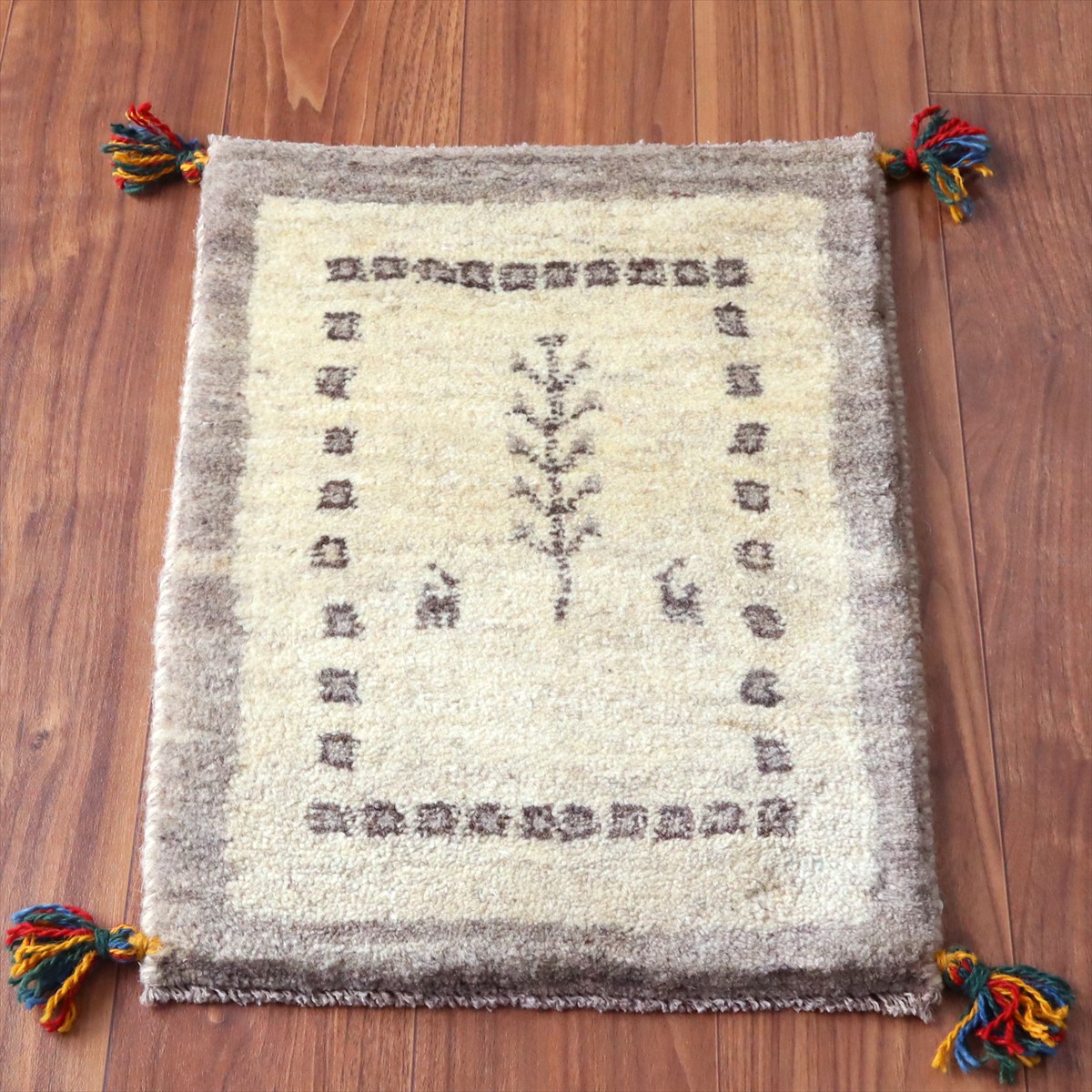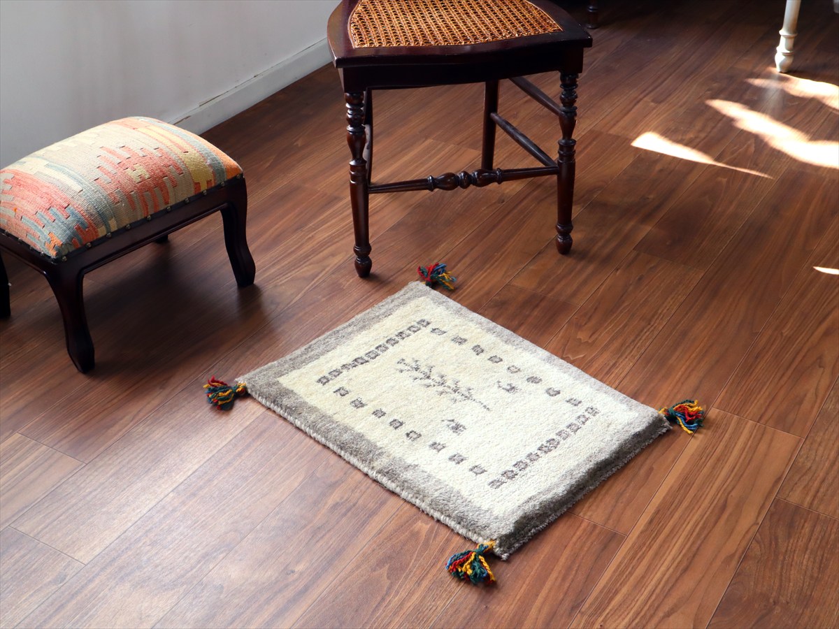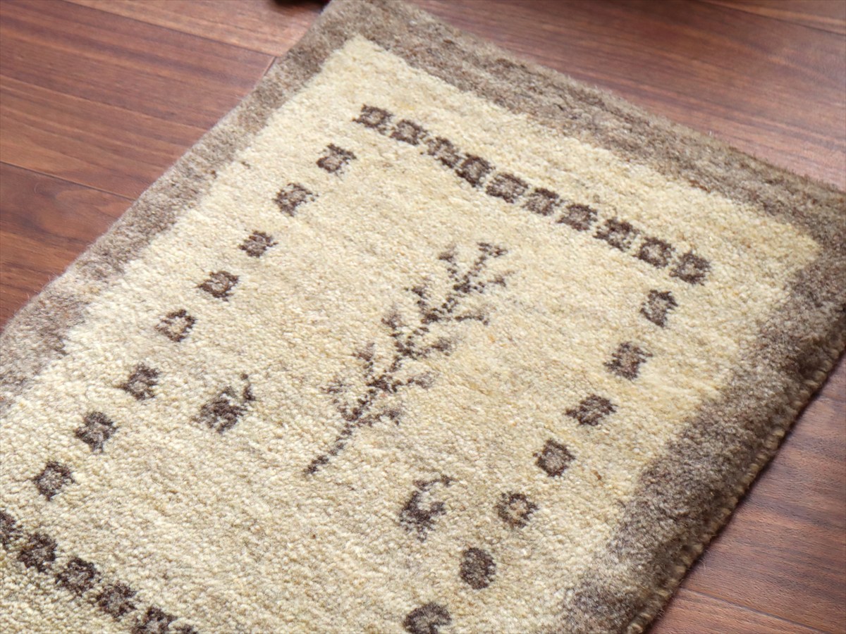ギャッベ ミニギャベ イラン手織り 56×42cm ナチュラルアイボリー 生命の樹と動物