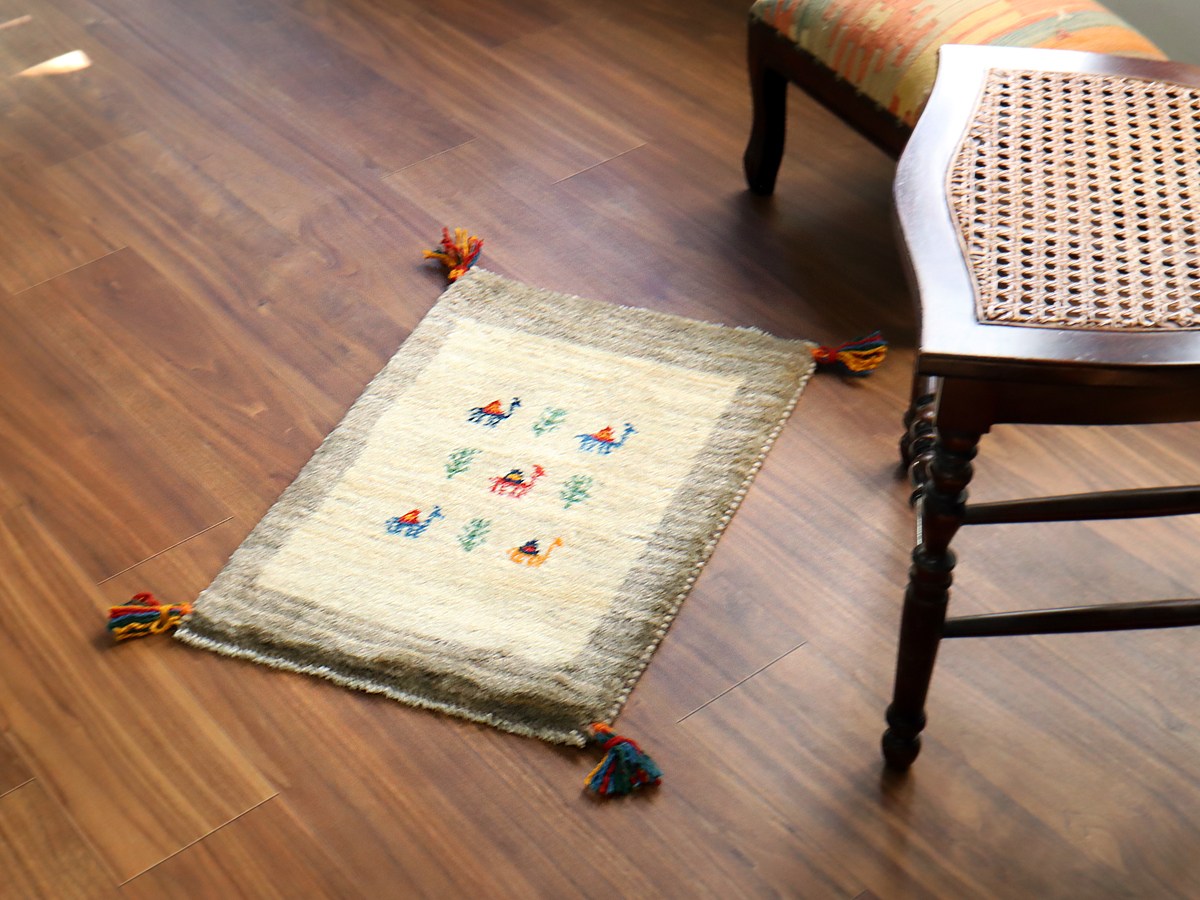 - ギャッベ ミニギャベ イラン手織り 59×42cm ナチュラルアイボリー ラクダと生命の樹