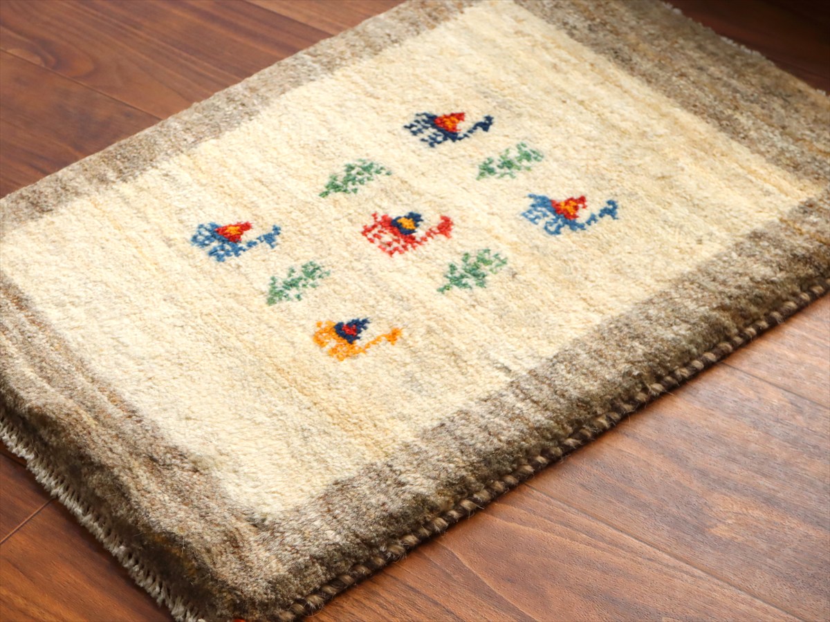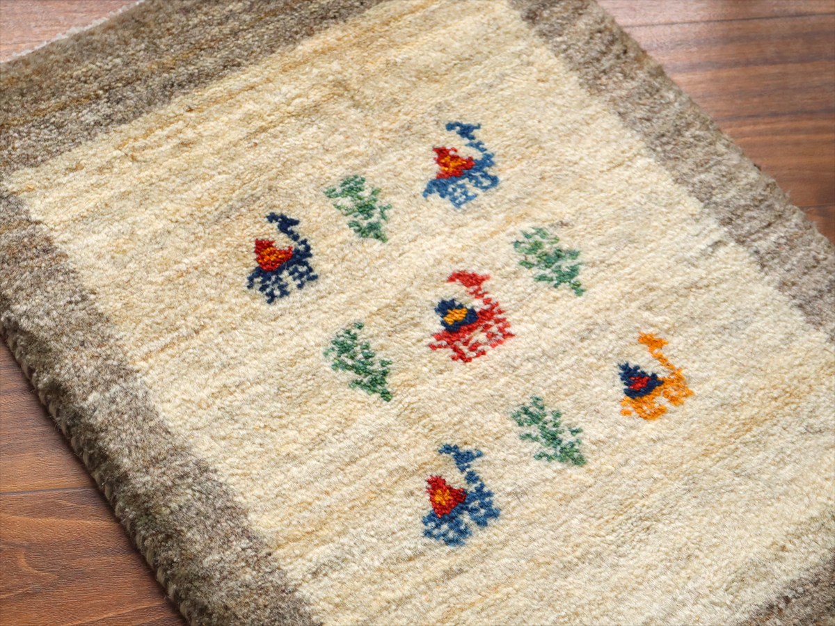 ギャッベ ミニギャベ イラン手織り 59×42cm ナチュラルアイボリー ラクダと生命の樹
