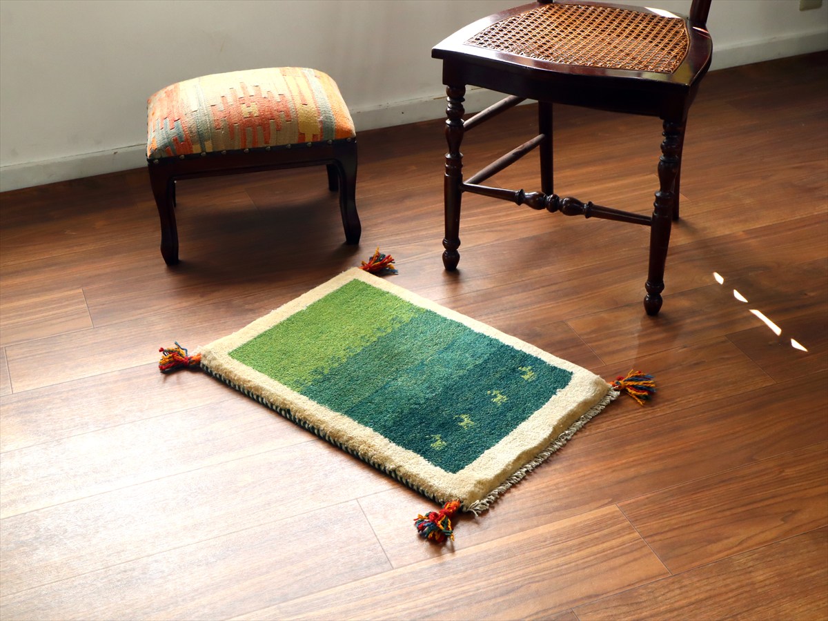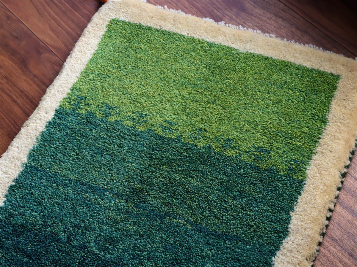 Key:Gabbeh, Tribal rug, Shiraz, Fars, Iran, Persia, Wool, ギャッベ, ギャベ, グリーン 緑 天然染料 草木染 ラグ, 絨毯, イラン, シラーズ, ペルシャ, バザールギャッベ, ポンポン, 手織り, 一点もの, 玄関マット, ふかふか, ガラタバザール