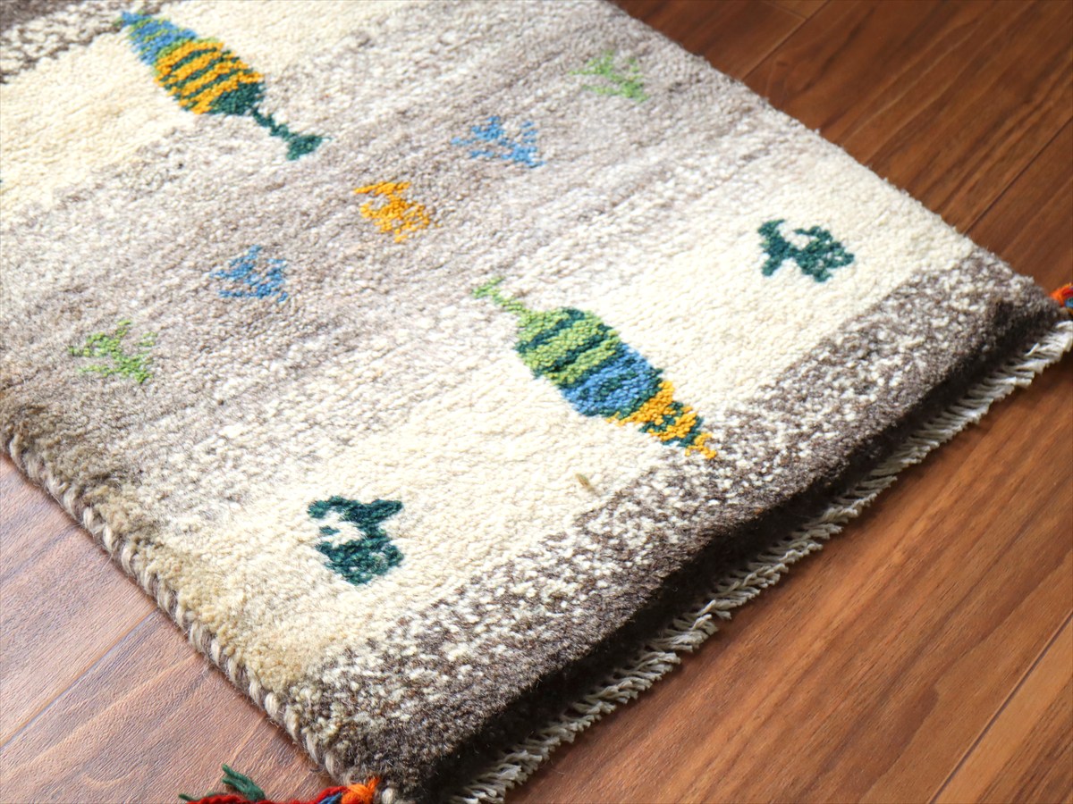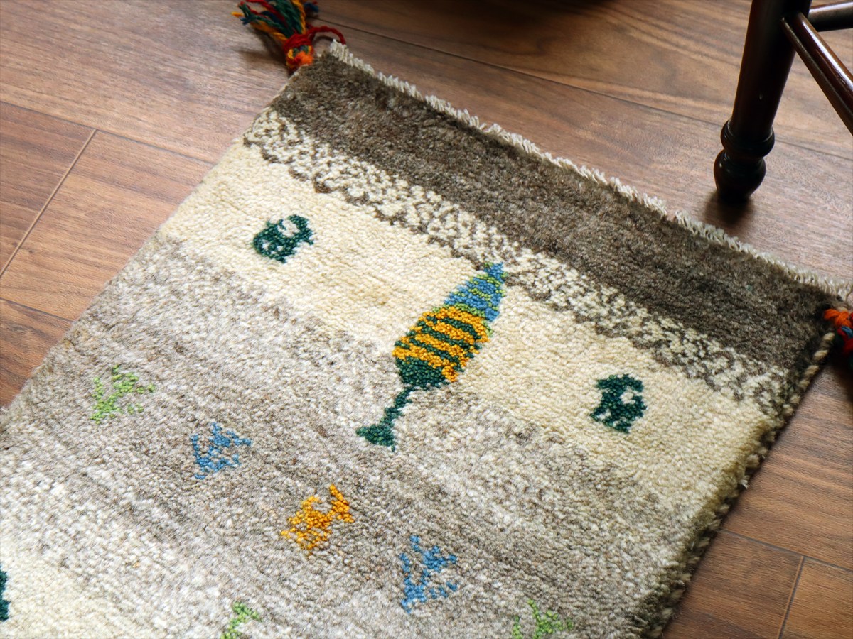 ギャッベ ミニギャベ イラン手織り 57×42cm ナチュラルアイボリー 糸杉と動物