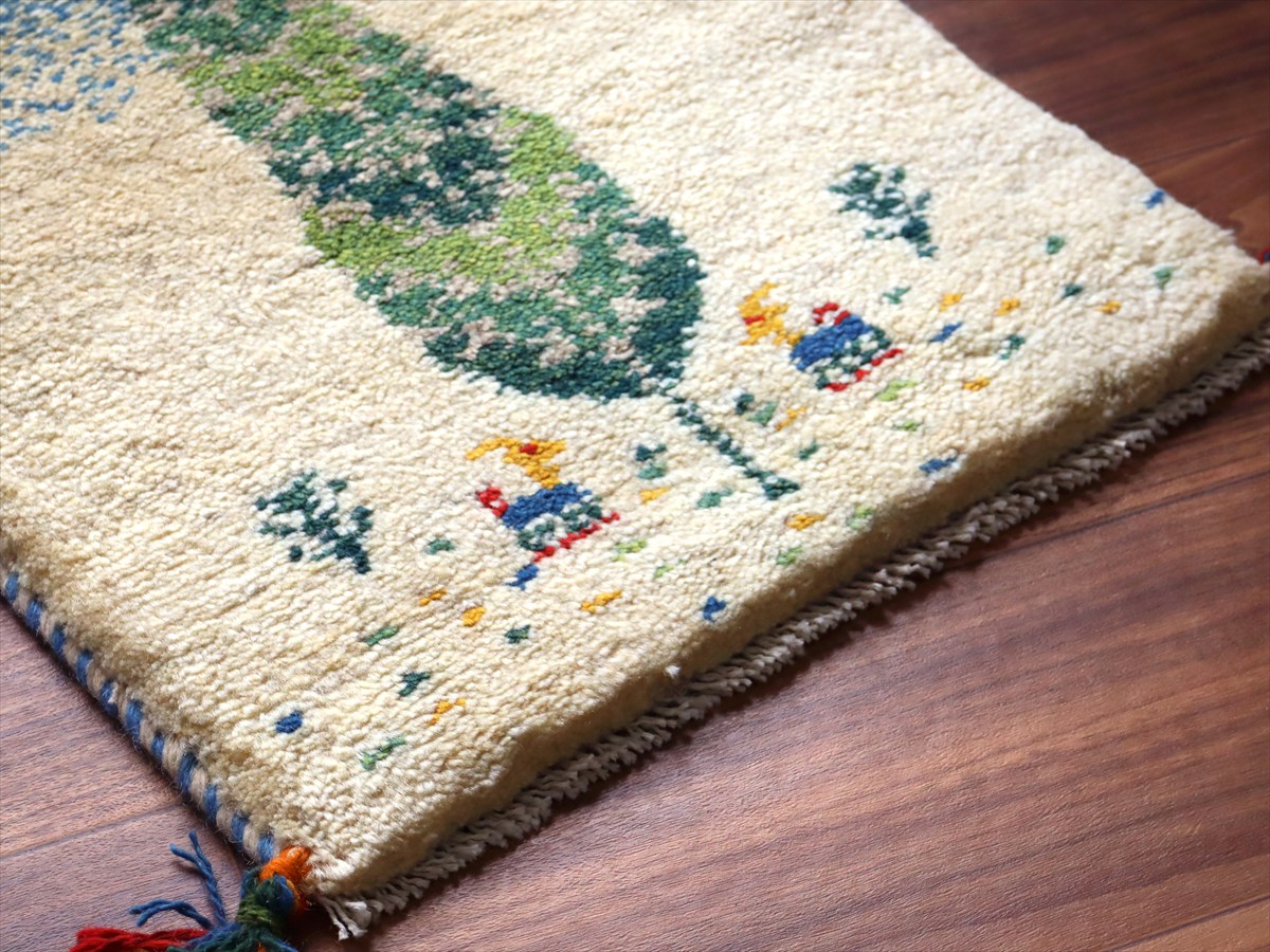ギャッベ ミニギャベ イラン手織り 57×40cm ナチュラルアイボリー 糸杉と動物