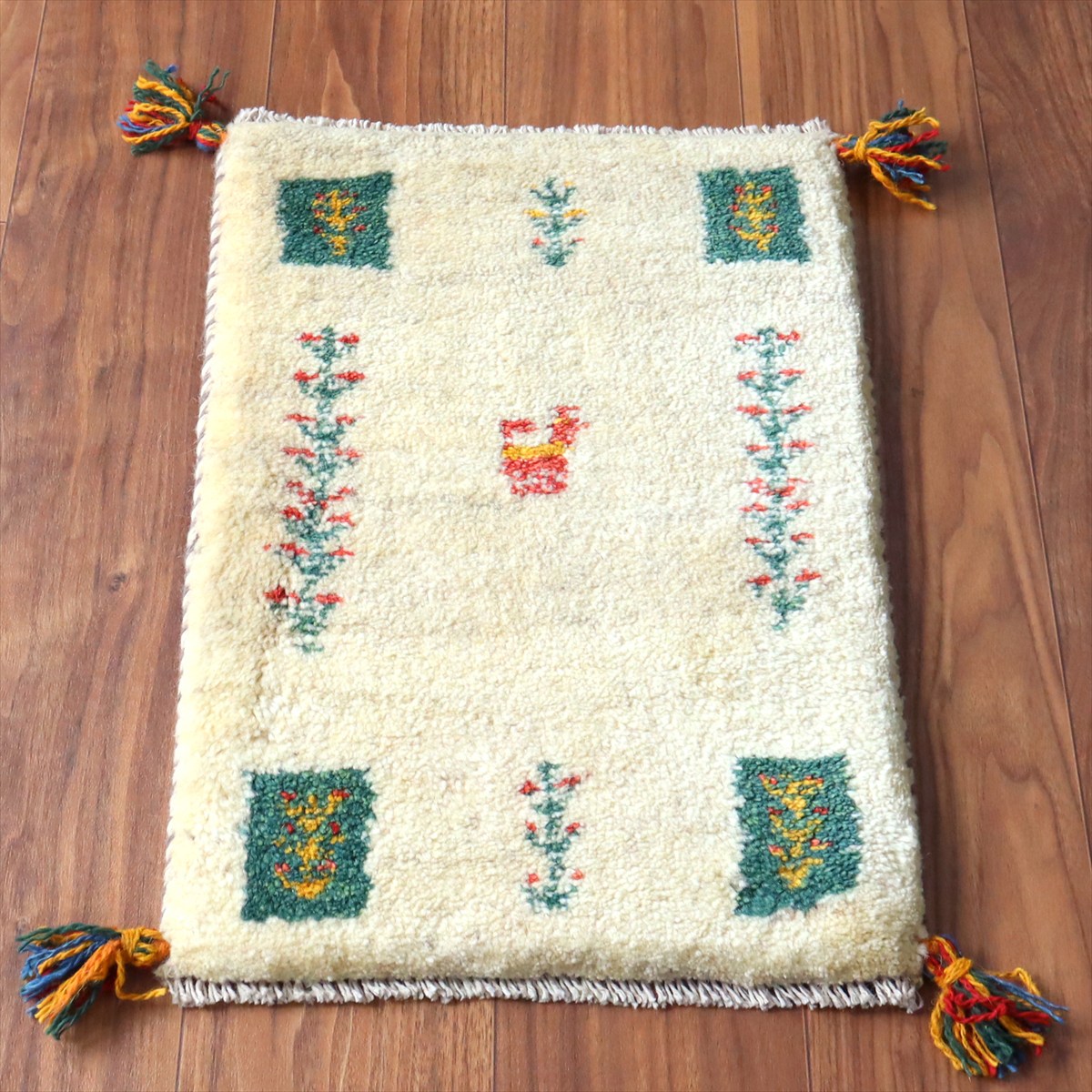 - ギャッベ ミニギャベ イラン手織り 55×39cm ナチュラルアイボリー 連なる生命の樹と動物