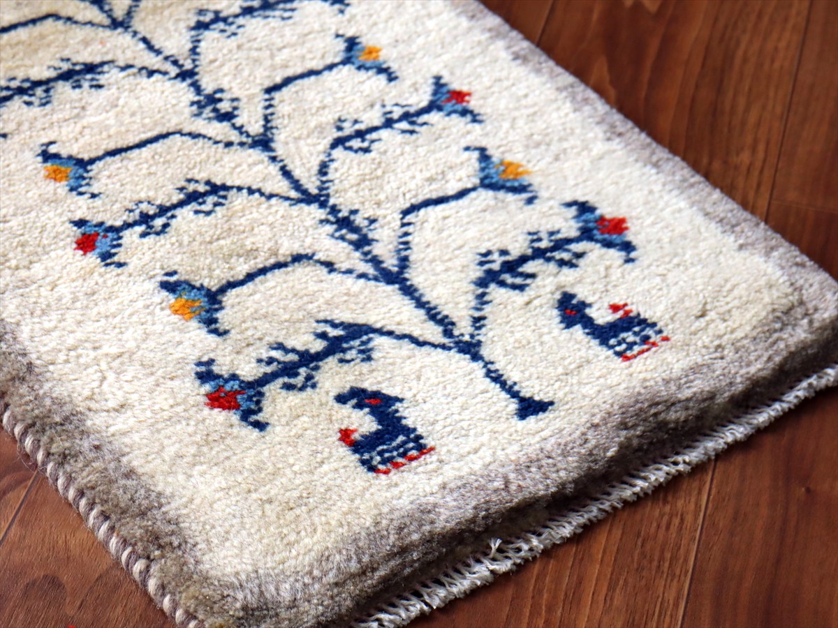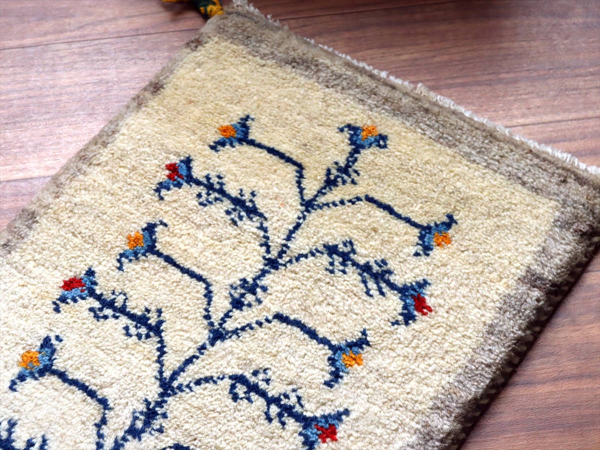 - ギャッベ ミニギャベ イラン手織り 57×40cm ナチュラルアイボリー 生命の樹と動物