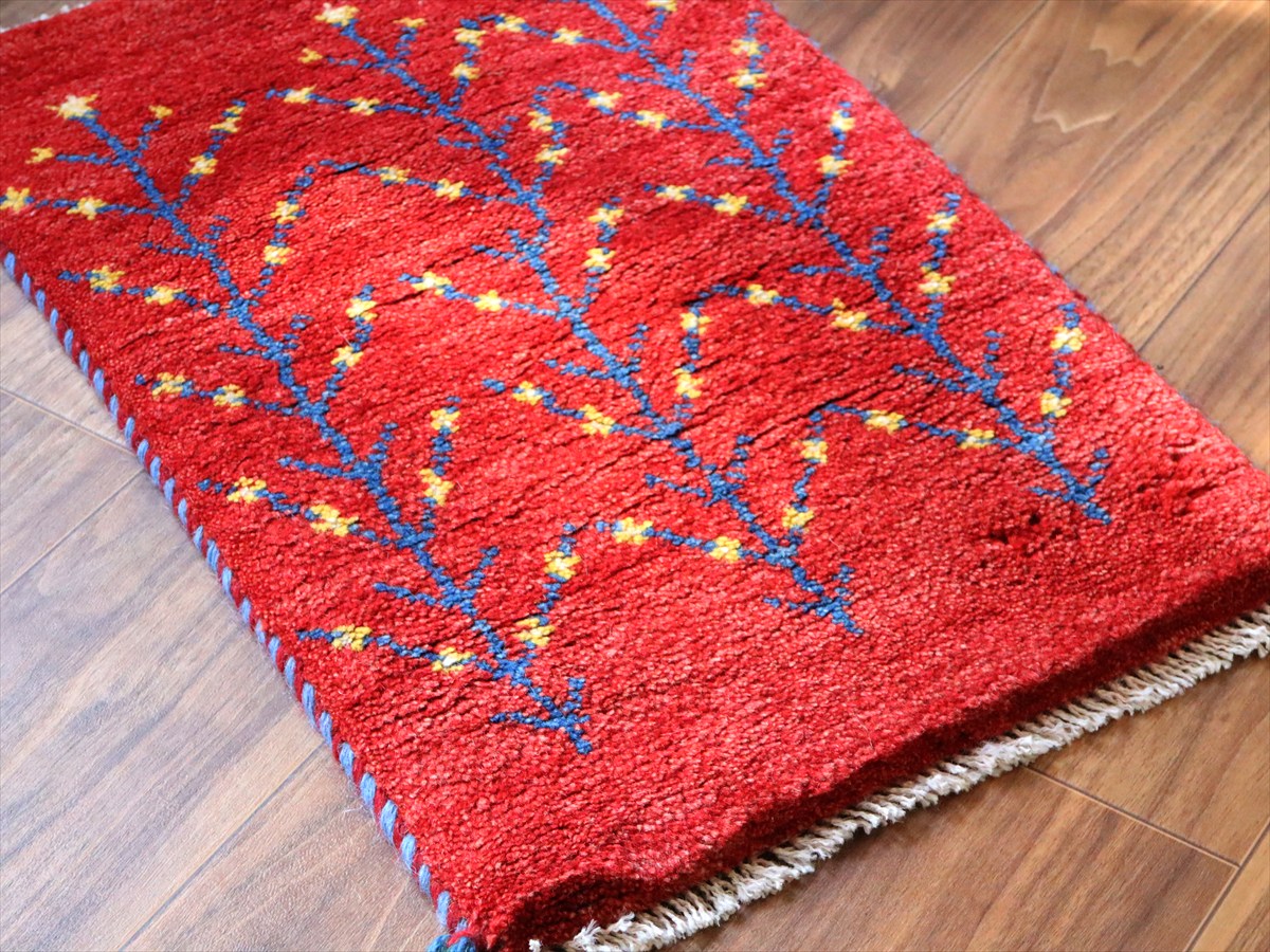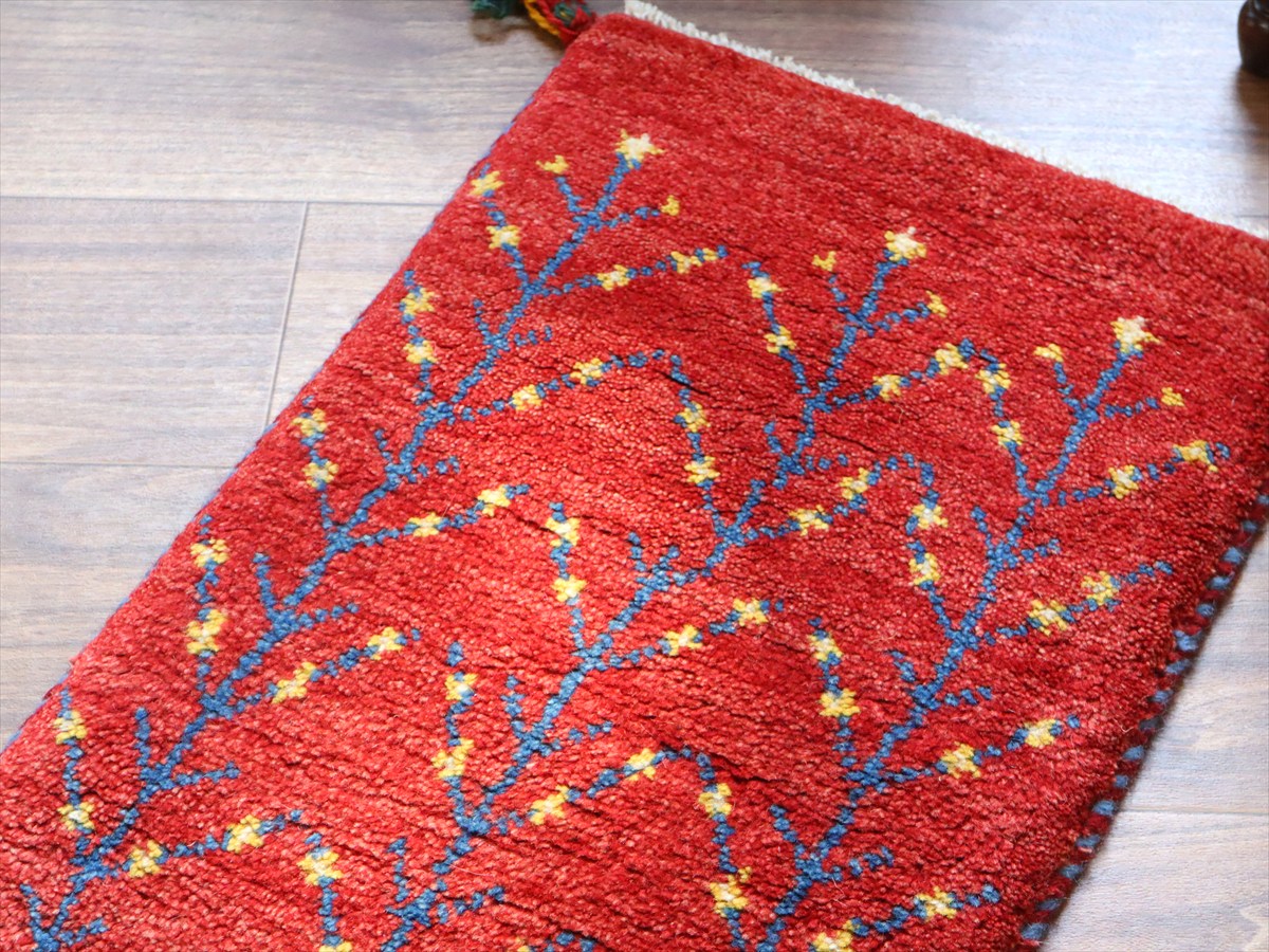 - ギャッベ ミニギャベ イラン手織り 60×38cm レッド 連なる生命の樹