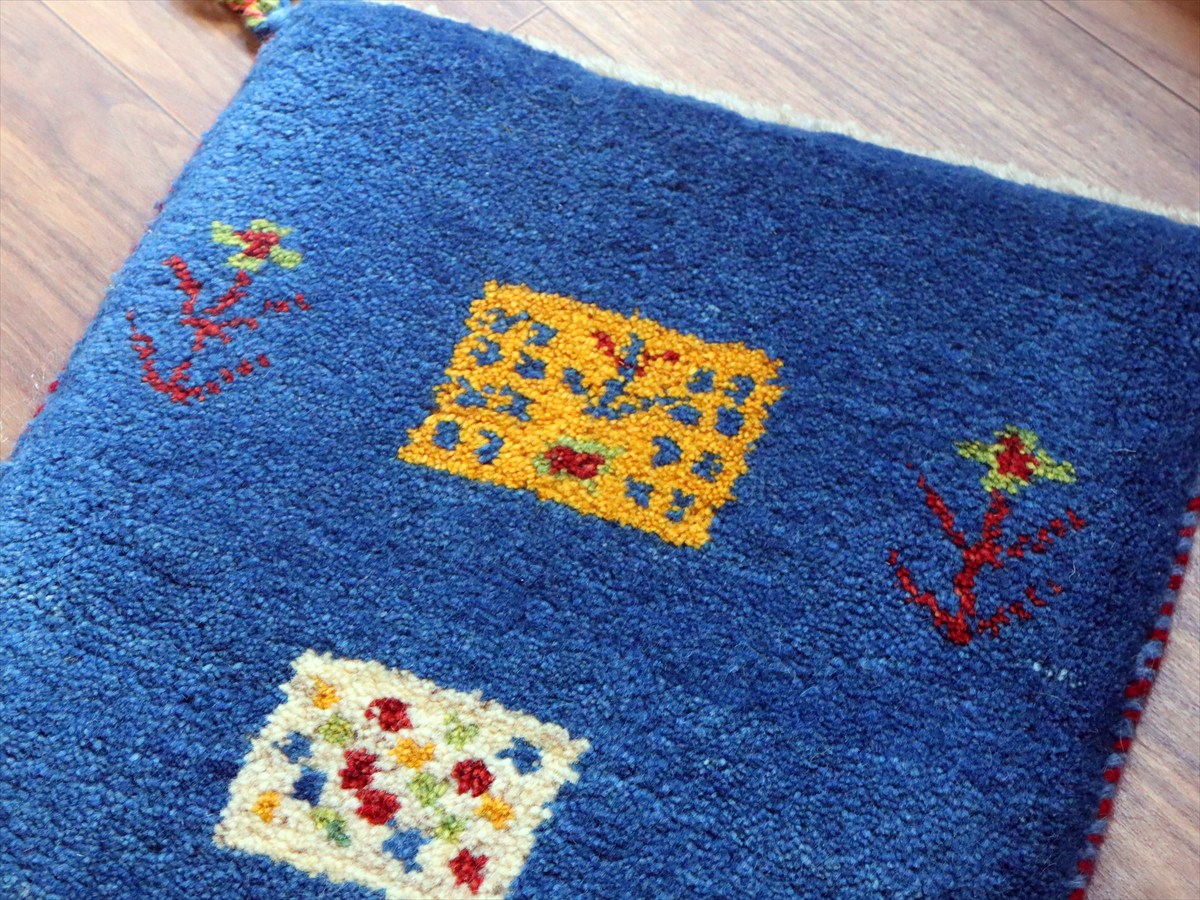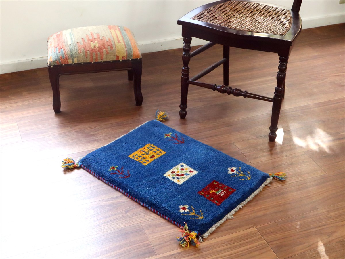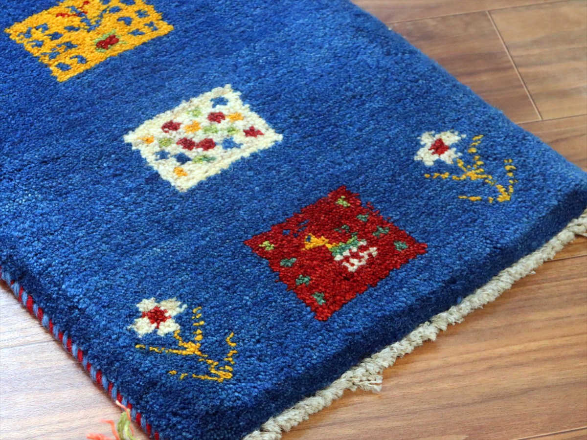 - ギャッベ ミニギャベ イラン手織り 57×42cm ブルー カラフルタイルと生命の樹