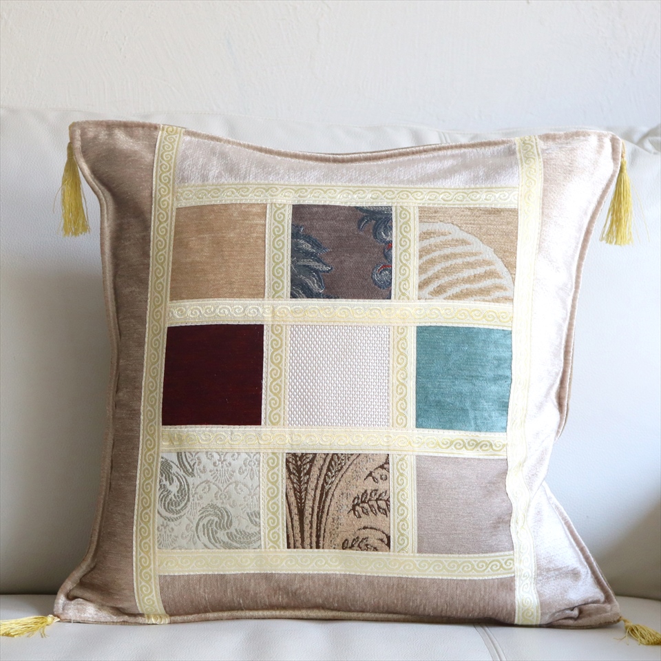 - シュニール素材 モザイククッションカバー 45cmサイズ パッチワーク