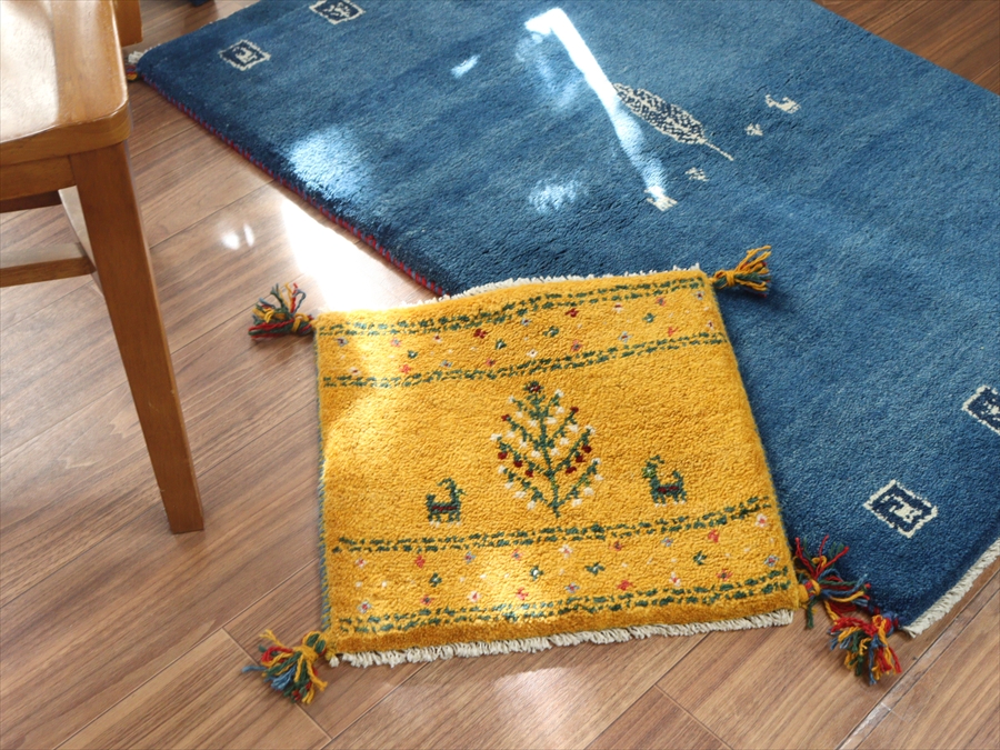 Key:ギャッベ ギャベ Gabbeh, イラン, 遊牧民, 手織り, 手紡ぎ, ペルシャ, 手織り絨毯, 部族絨毯, トライバルラグ, ミニギャッベ, オレンジ, イエロー, 黄色, ポンポン, 1点もの, 現品販売, ウール100%, ミニギャベ, Gabbeh, Iran Persian rug, Hand Knotted, ガラタバザール
