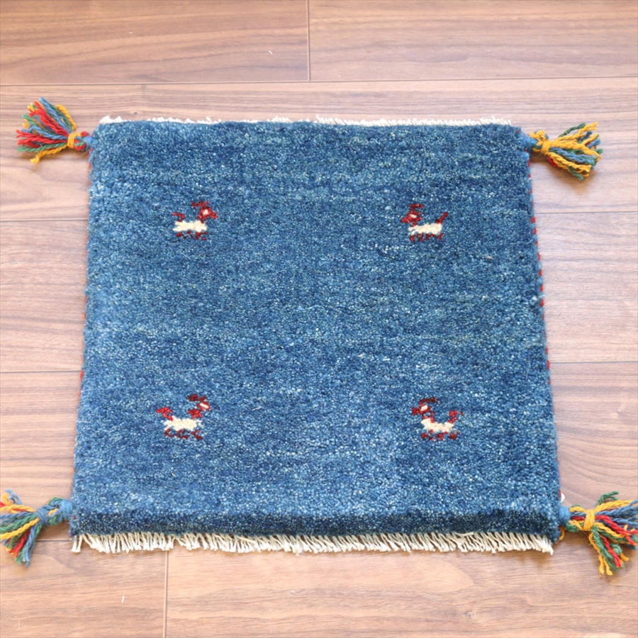 ギャッベ イラン産手織り 座布団サイズ 40x41cm ブルー 無地 シンプル