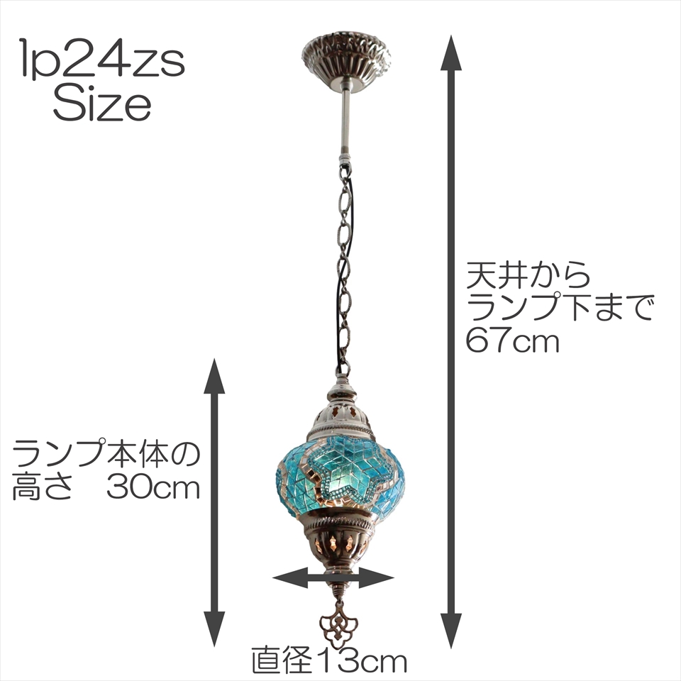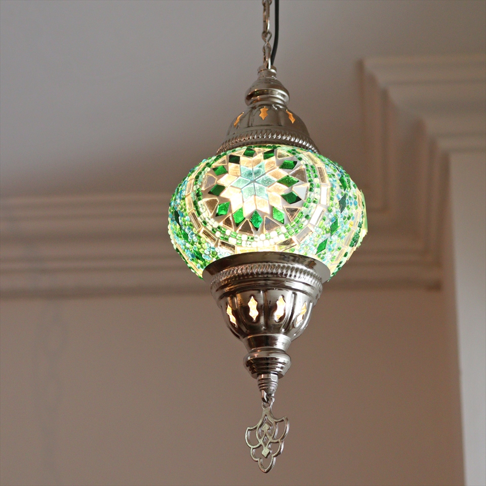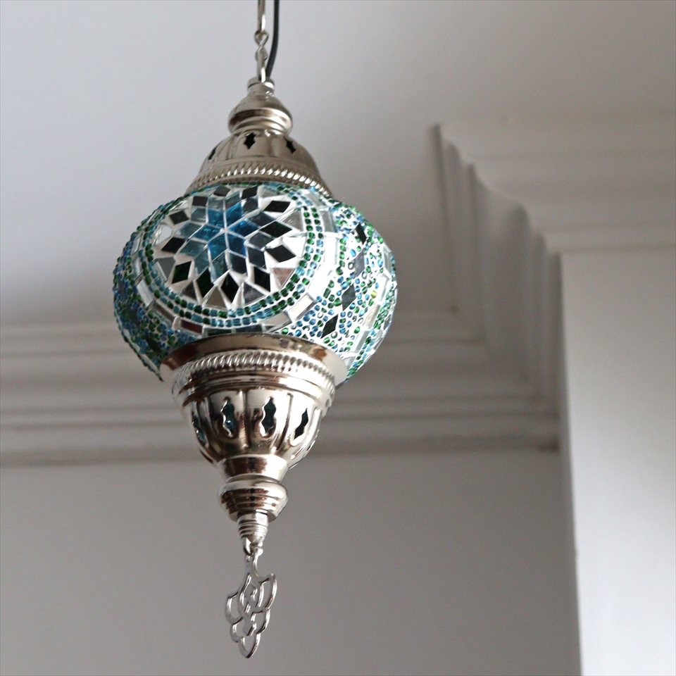 - トルコランプ モザイクペンダントランプ 直径13cm 全高67cm ブルー/グリーン シルバーカラーの灯具