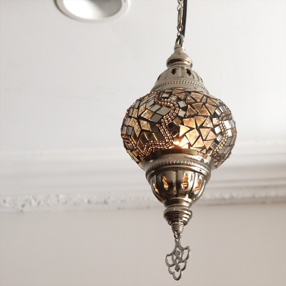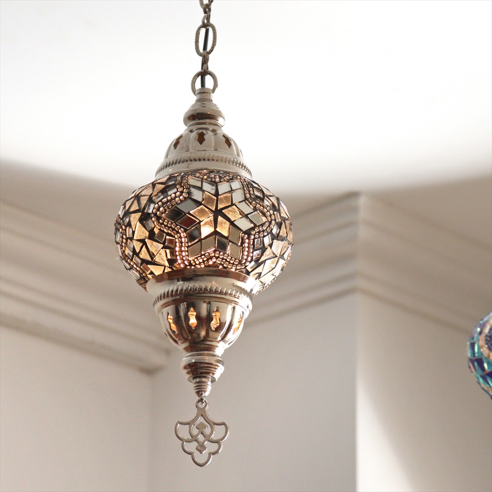 トルコランプ モザイクペンダントランプ 直径13cm 全高67cm ホワイト シルバーカラーの灯具