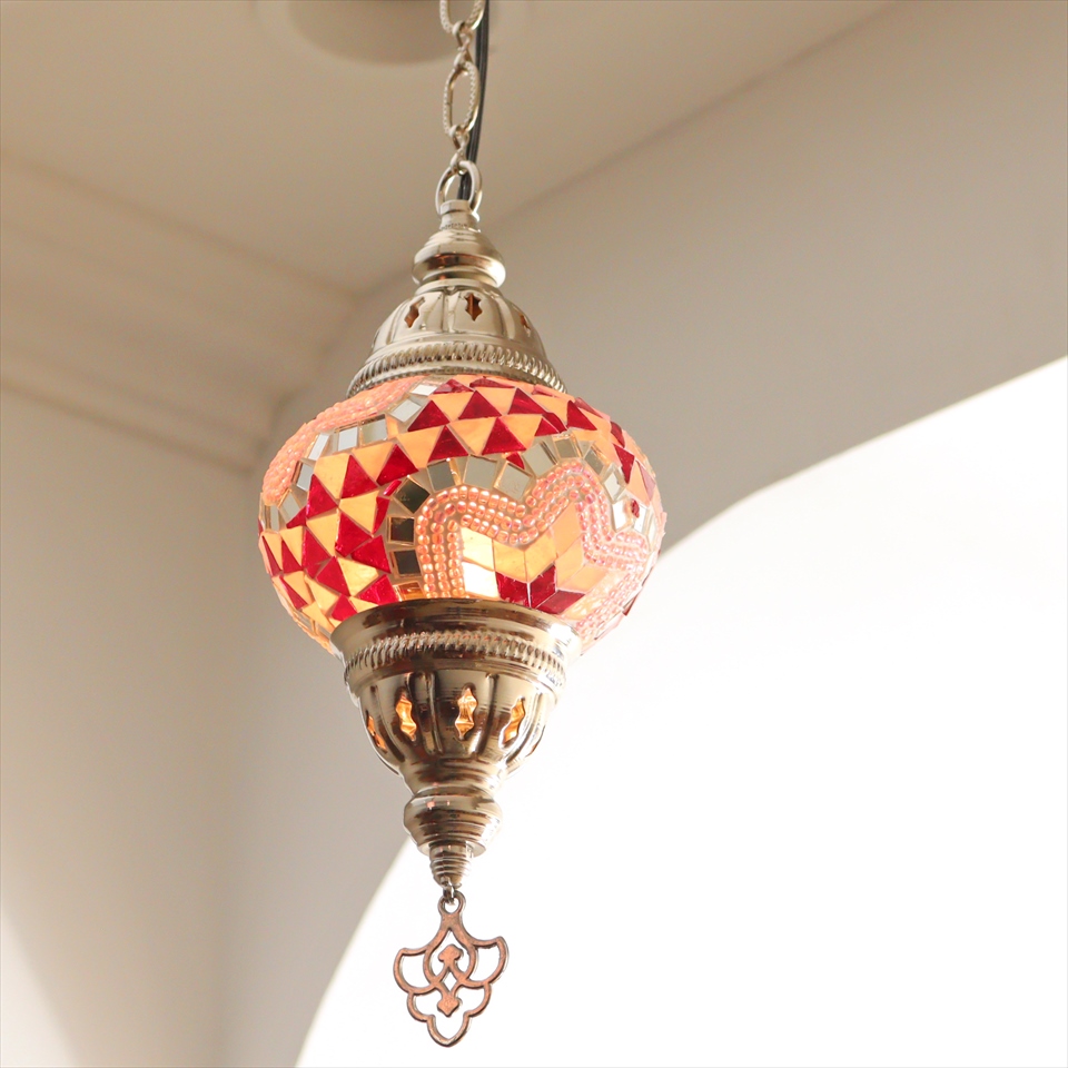 トルコランプ モザイクペンダントランプ 直径13cm 全高67cm ピンク シルバーカラーの灯具