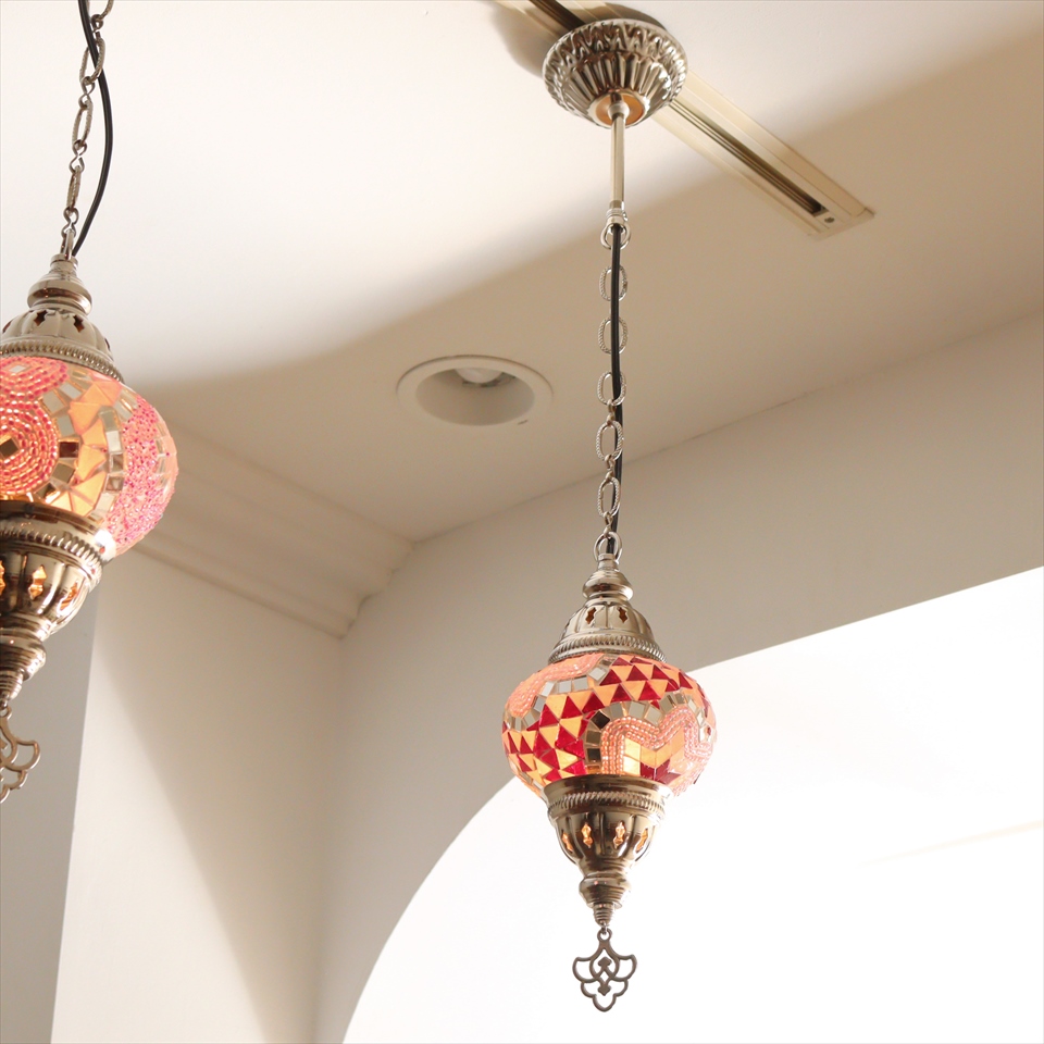 - トルコランプ モザイクペンダントランプ 直径13cm 全高67cm ピンク シルバーカラーの灯具