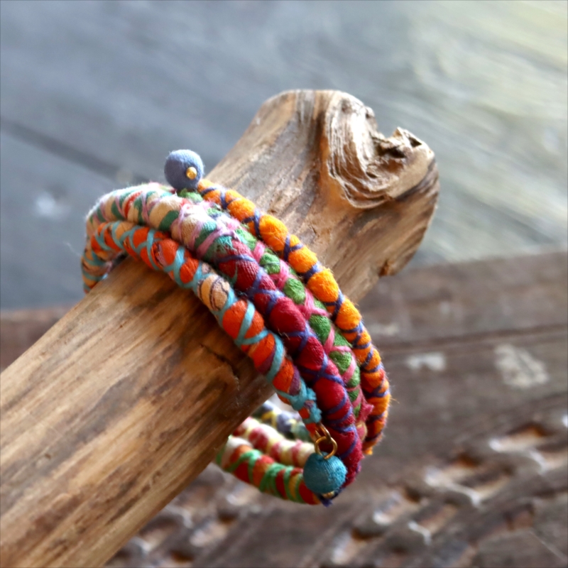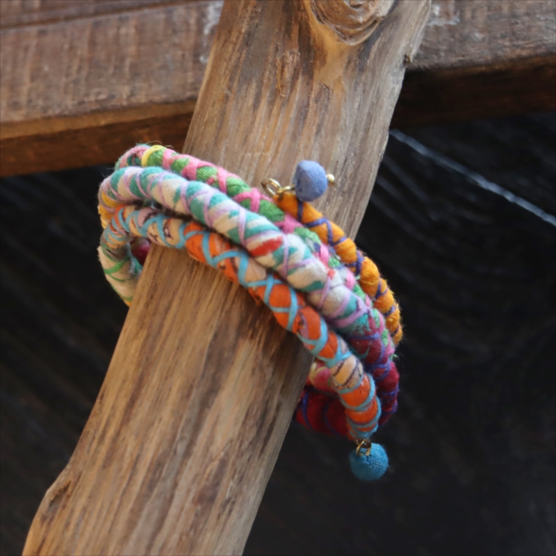 - リサイクルサリー スパイラルバングル インド 手作りブレスレット
