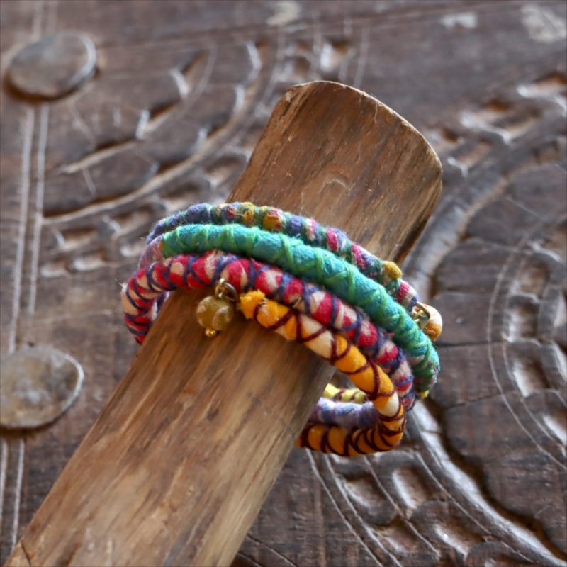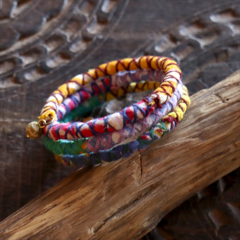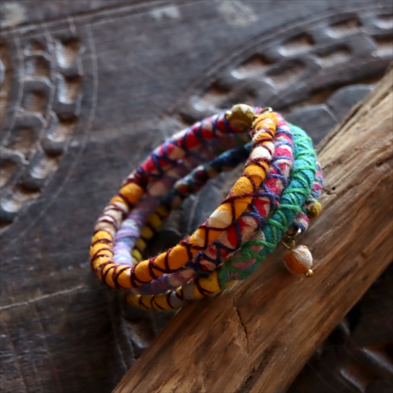 - リサイクルサリー スパイラルバングル インド 手作りブレスレット