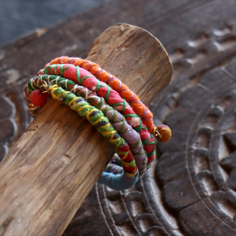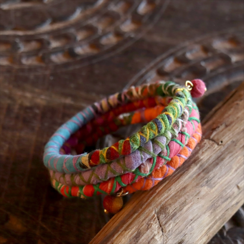 - リサイクルサリー スパイラルバングル インド 手作りブレスレット