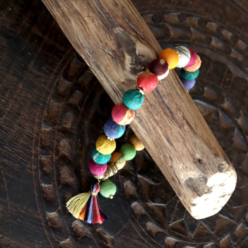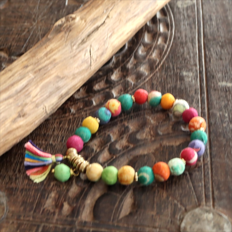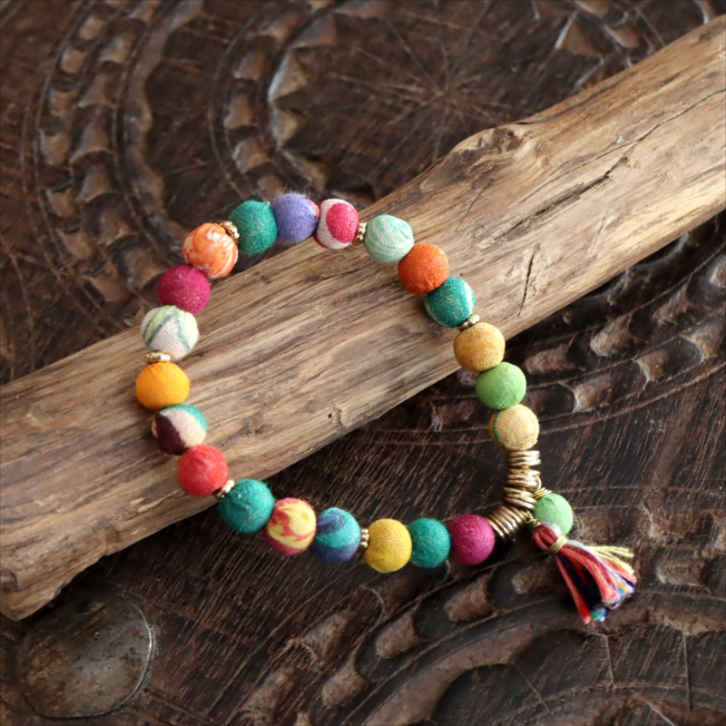 リサイクルサリービーズ ブレスレット 21粒のカラフルビーズ