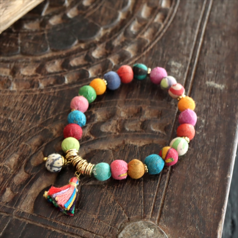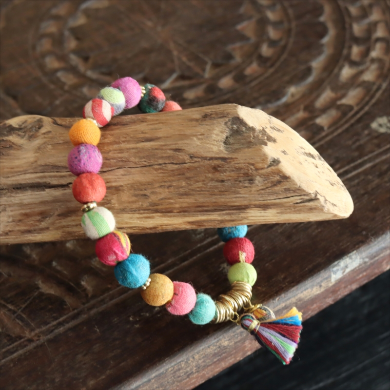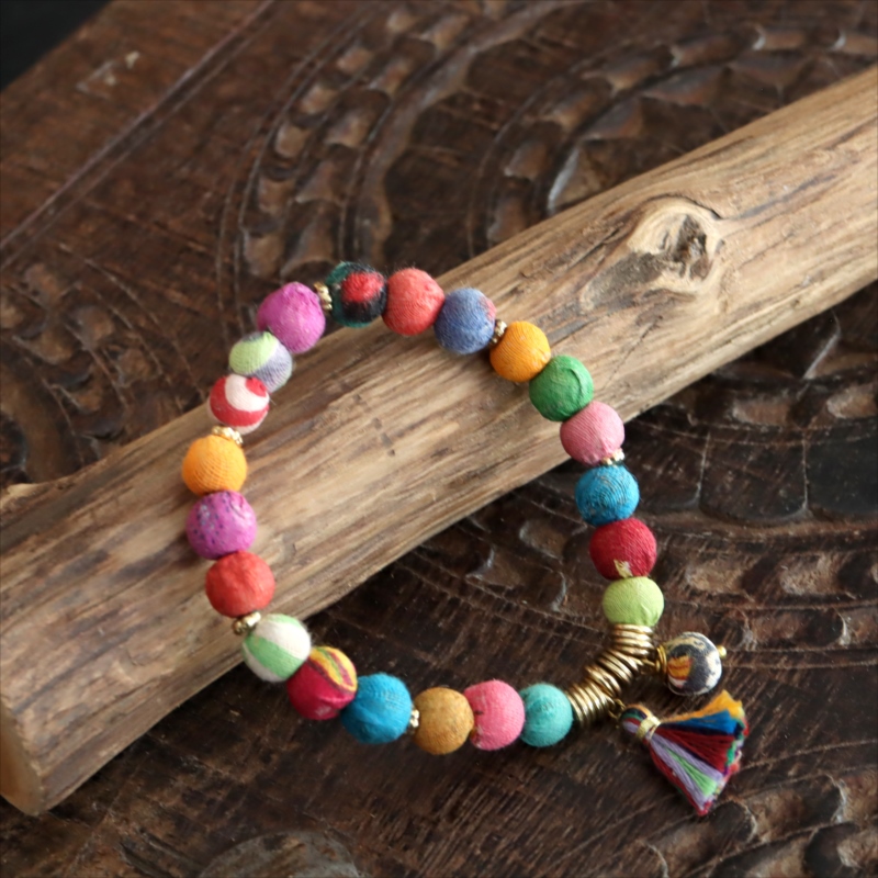 リサイクルサリービーズ ブレスレット 21粒のカラフルビーズ