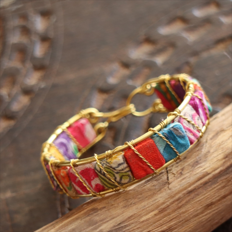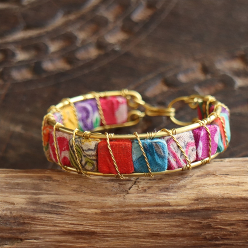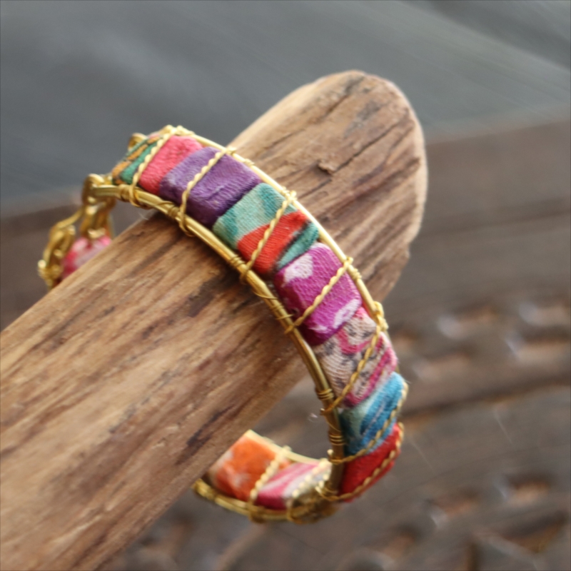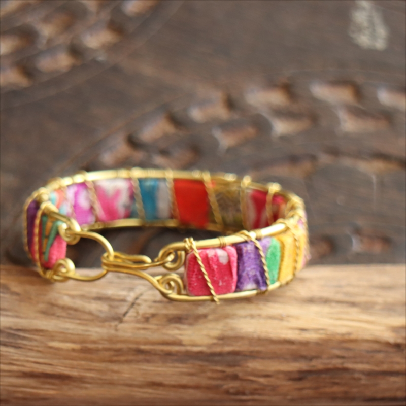 - リサイクルサリー バングル 布 クラフトビーズ カラフルな四角いタイル