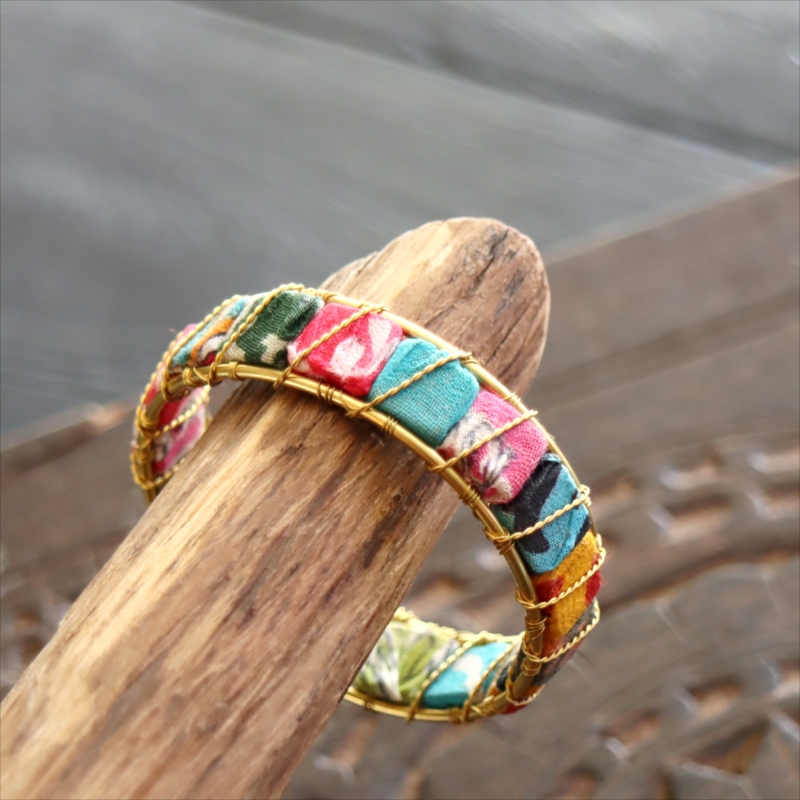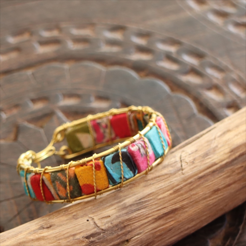 - リサイクルサリー バングル 布 クラフトビーズ カラフルな四角いタイル