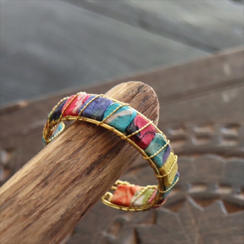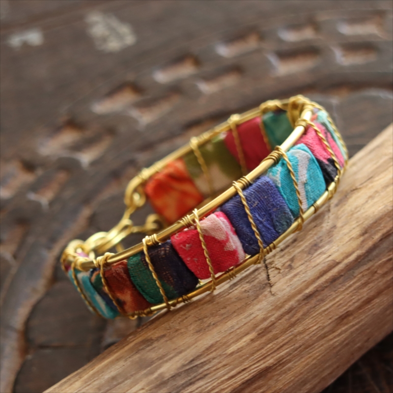 - リサイクルサリー バングル 布 クラフトビーズ カラフルな四角いタイル