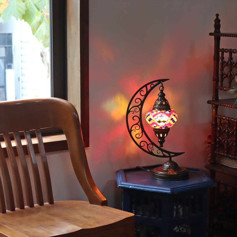 - トルコランプ モザイクテーブルランプ クレッセントムーン 高さ41cm ミックスカラー