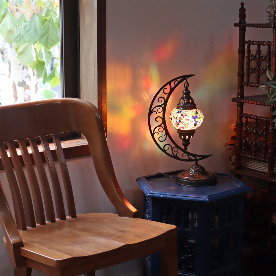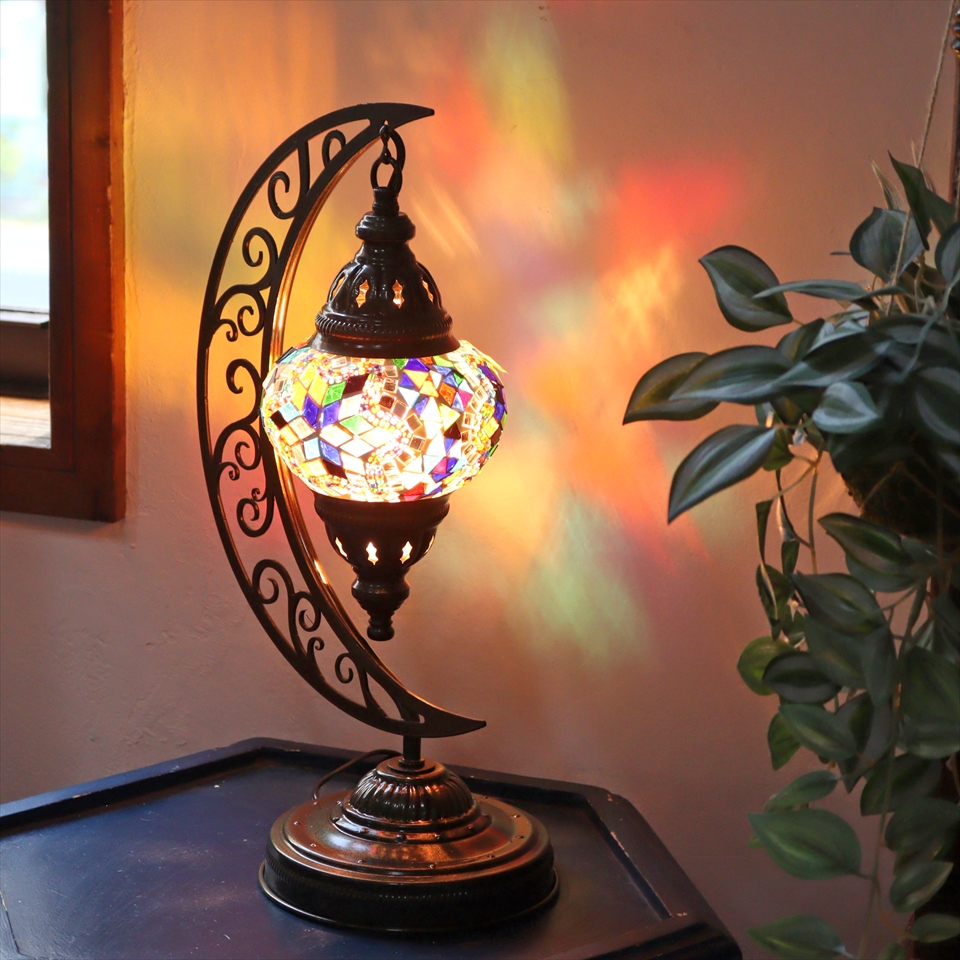 - トルコランプ モザイクテーブルランプ クレッセントムーン 高さ41cm ミックスカラー