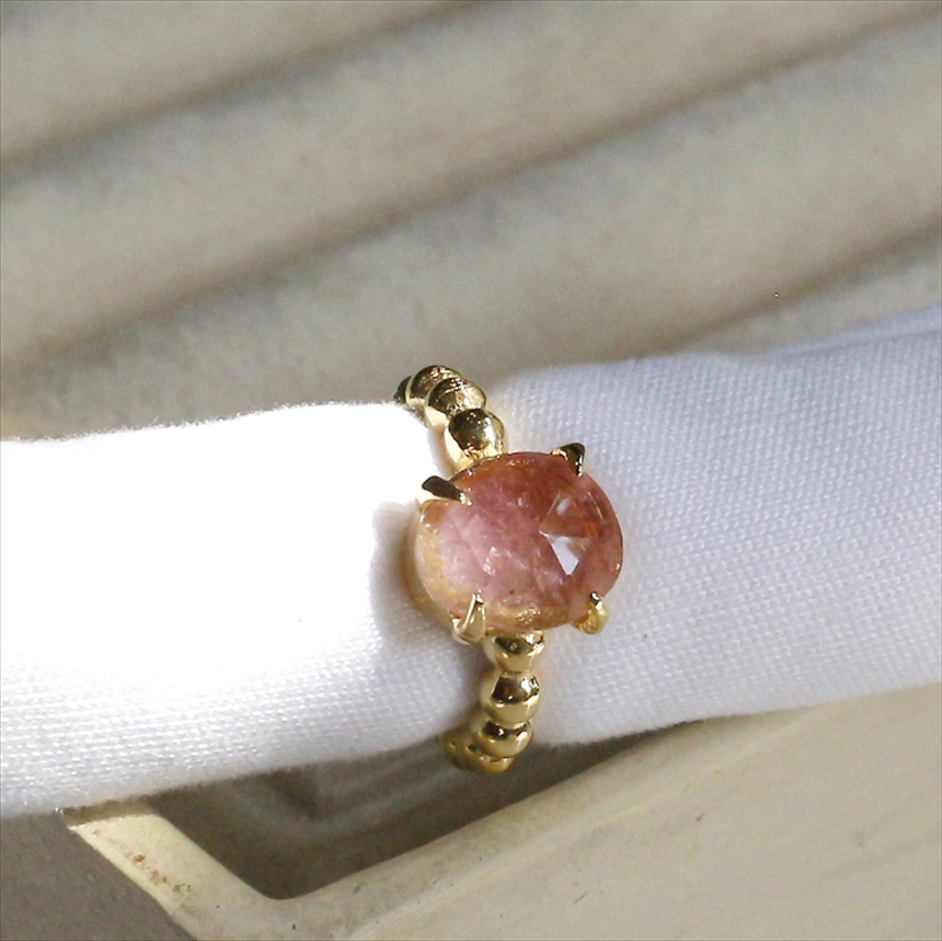 淡いピンクのグラデーションが美しい、ピンクトルマリンのイヤーカフ。ボールチェーン調のゴールドアームが柔らかな印象です。※石の大きさ0.7×0.4cm