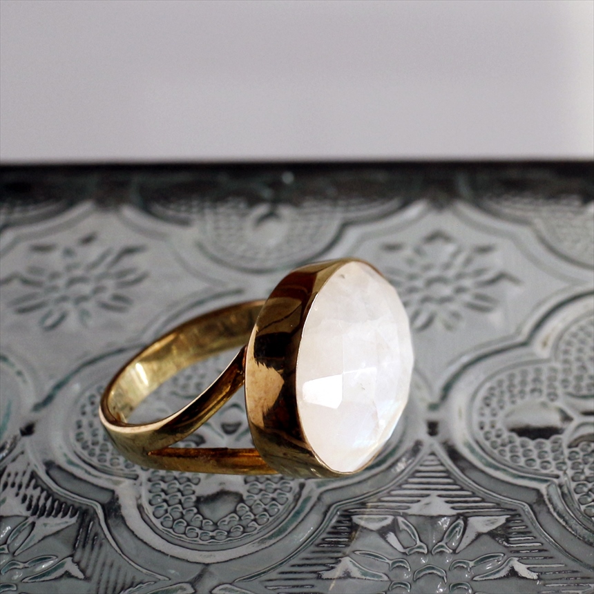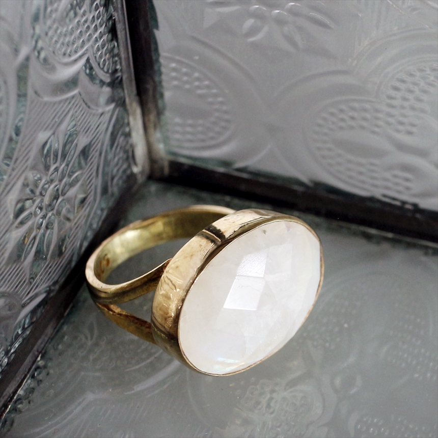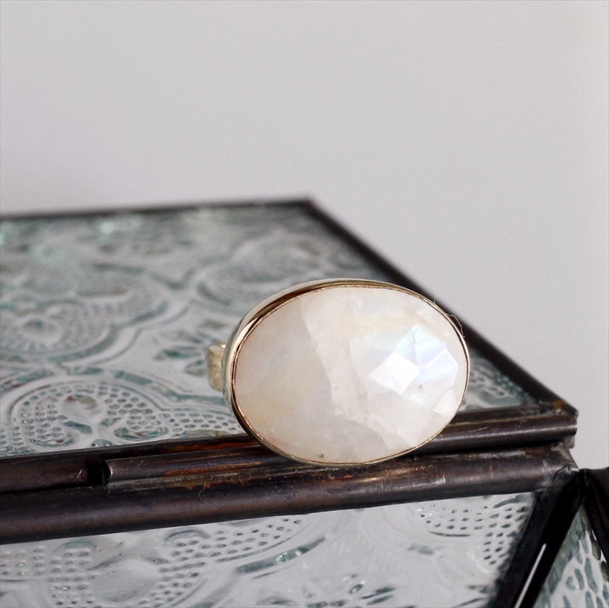- シルバーリング レインボームーンストーン オーバル横向き 大粒 18KGF 天然石 トルコジュエリー