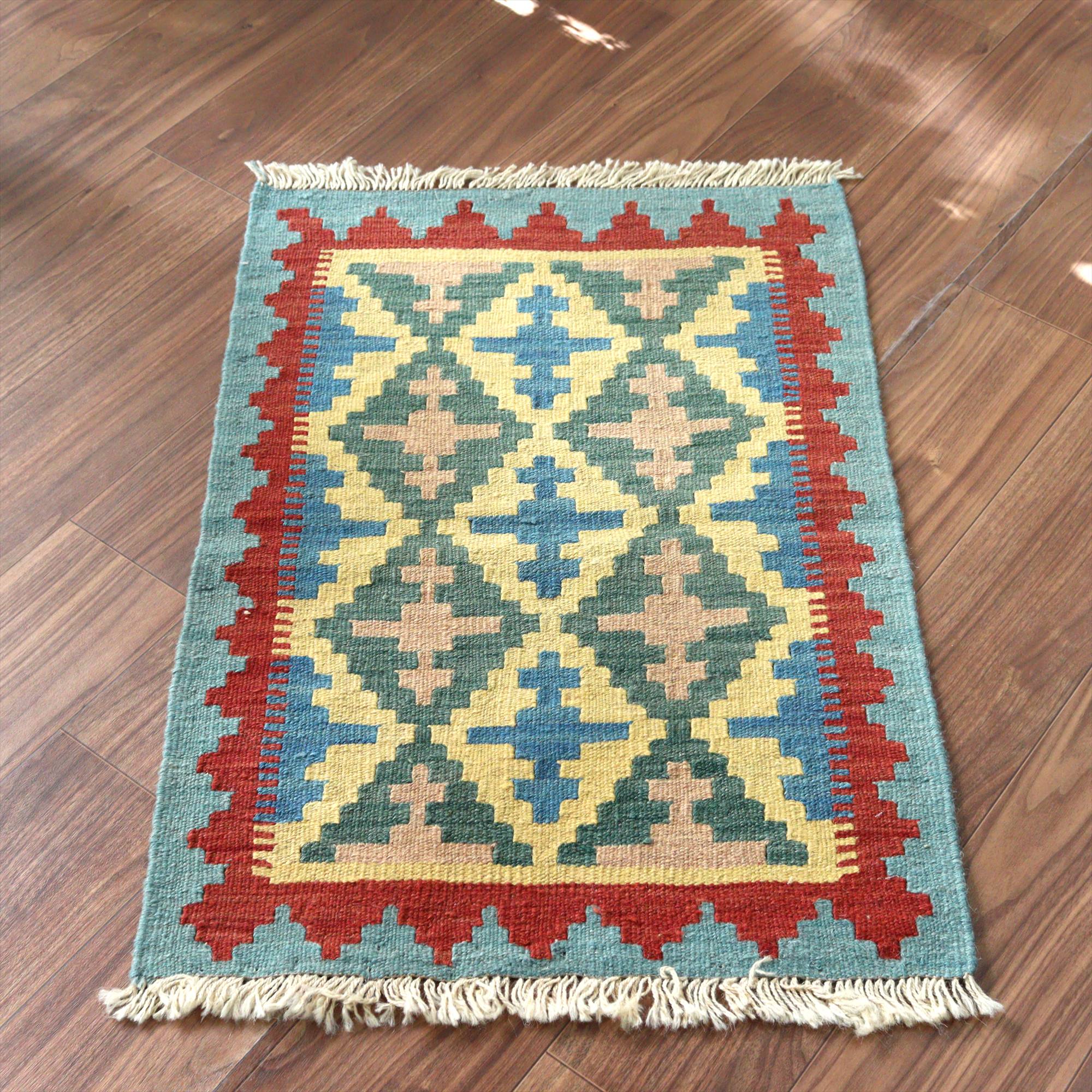 - 手織りキリム イラン シラーズ86×59cm カラフルな幾何学モチーフ