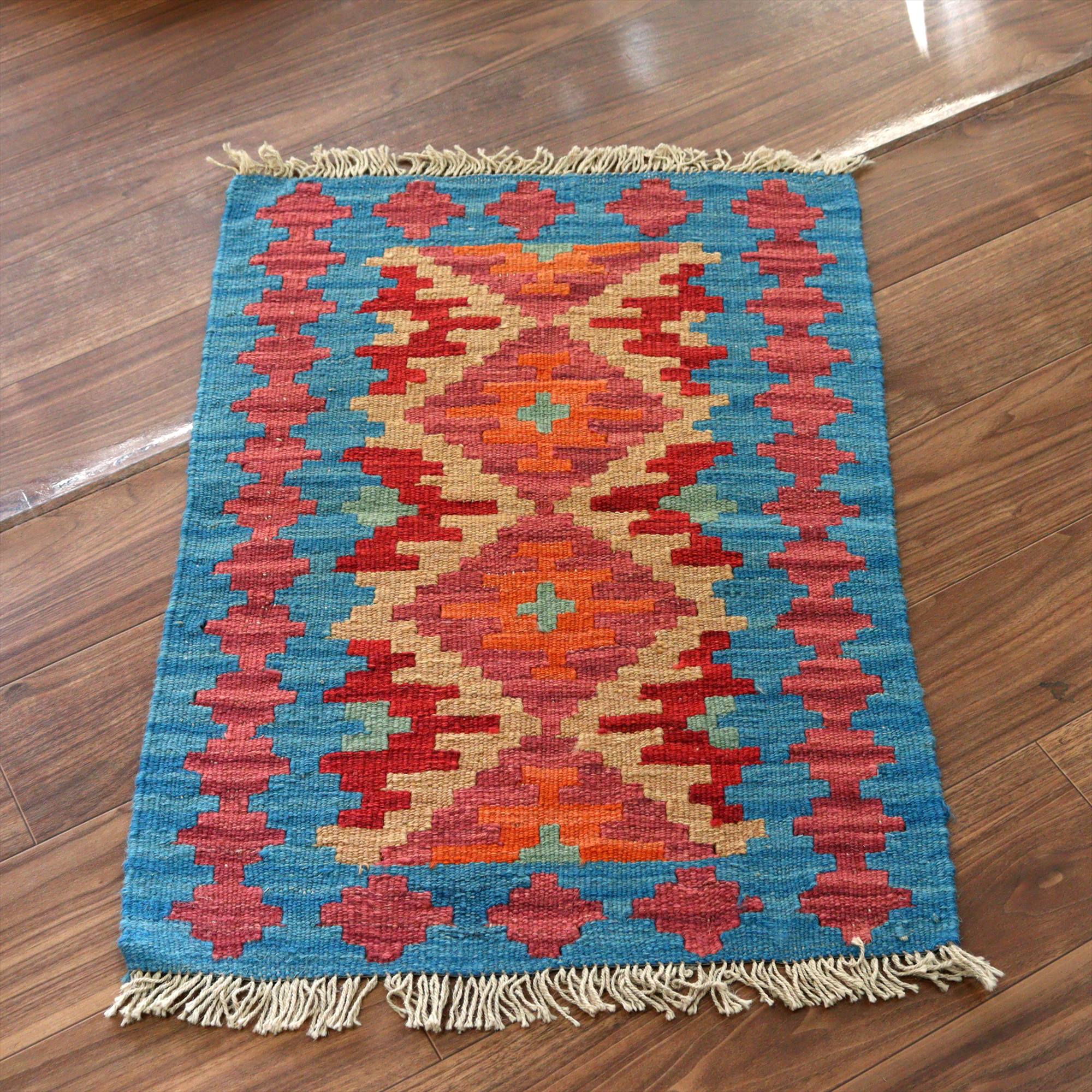 手織りキリム イラン シラーズ85×61cm カラフルな幾何学モチーフ