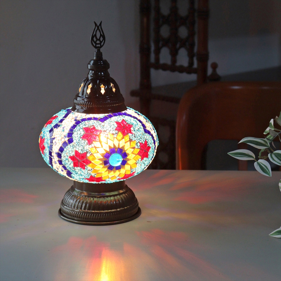 トルコランプ モザイクテーブルランプ 直径16cm 高さ27cm ブルー