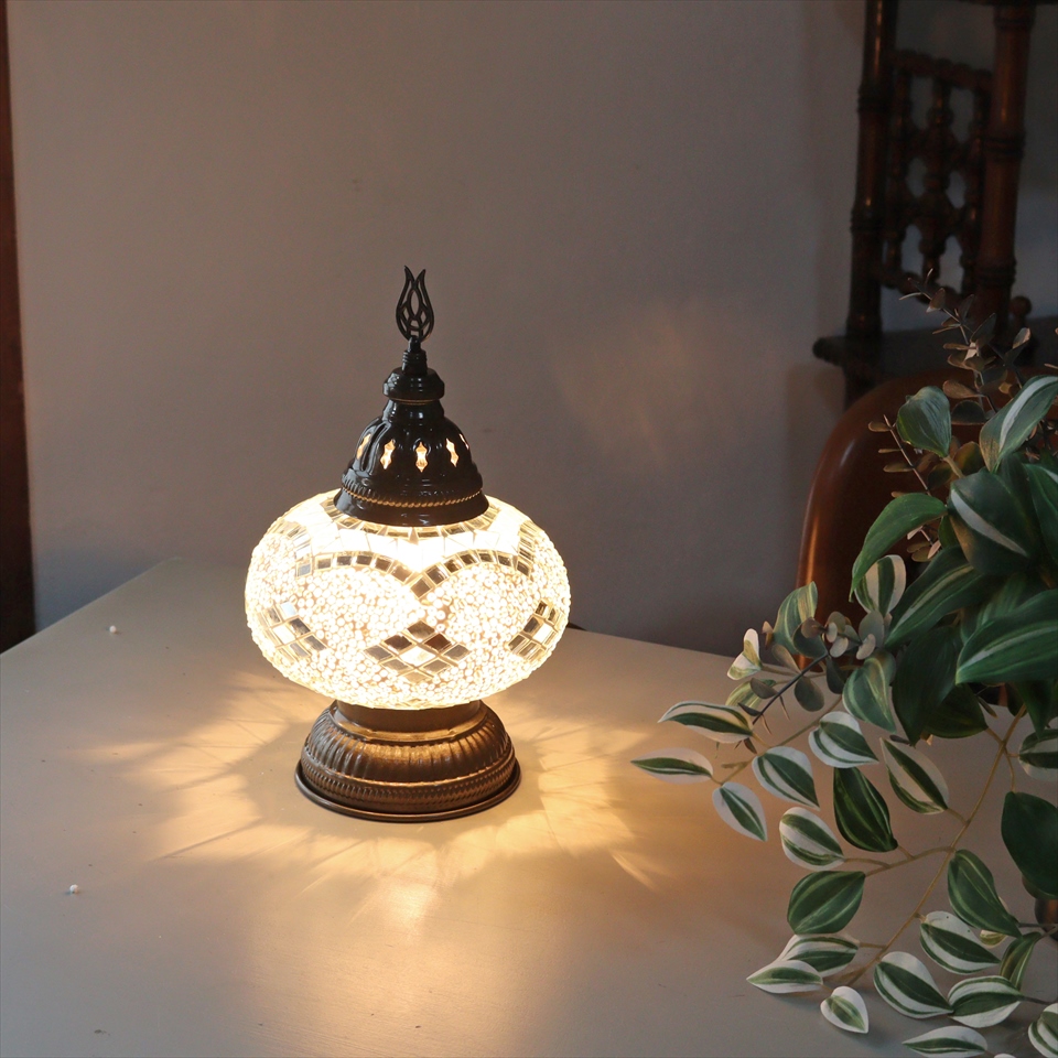 トルコランプ モザイクテーブルランプ 直径16cm 高さ27cm ホワイト