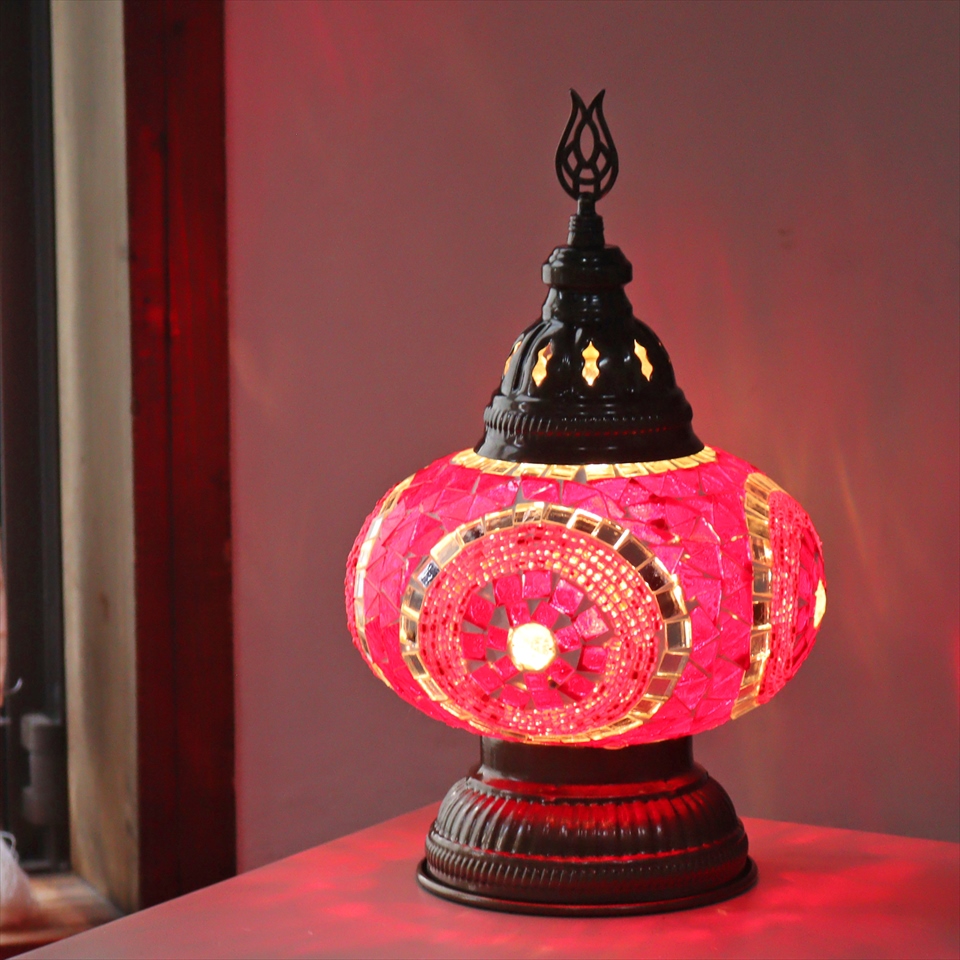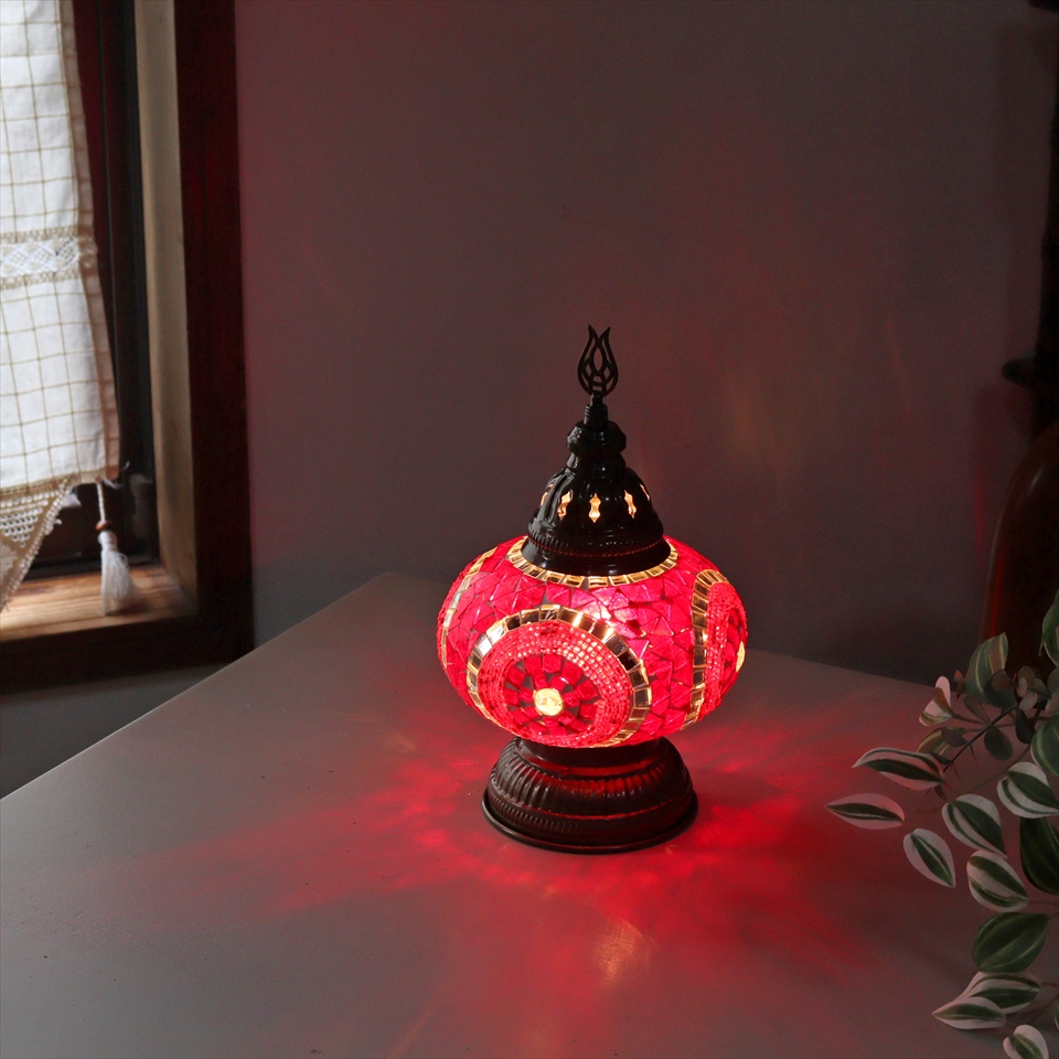 トルコランプ モザイクテーブルランプ 直径16cm 高さ27cm レッド