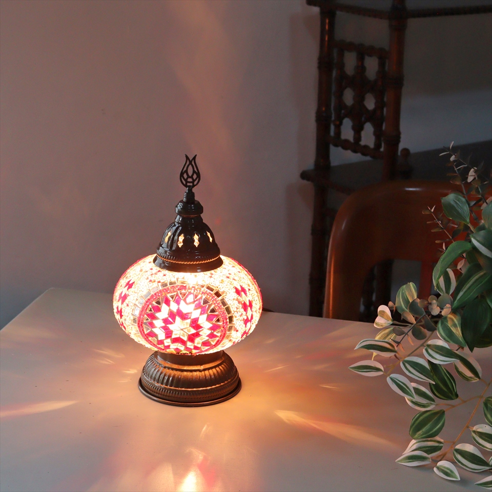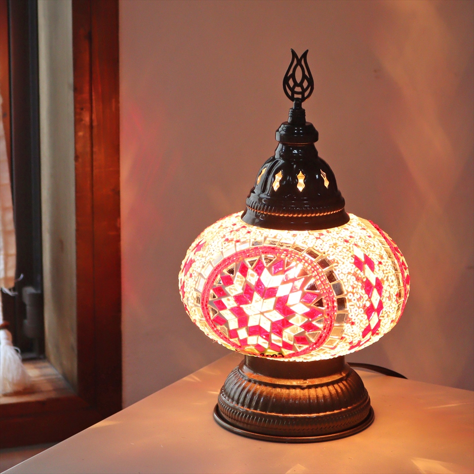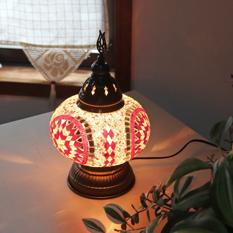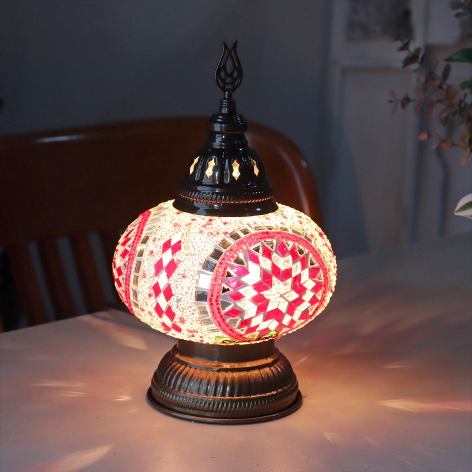 - トルコランプ モザイクテーブルランプ 直径16cm 高さ27cm レッド/ホワイト