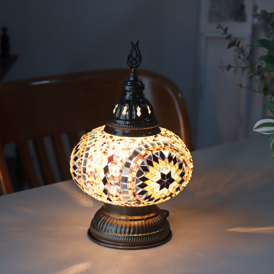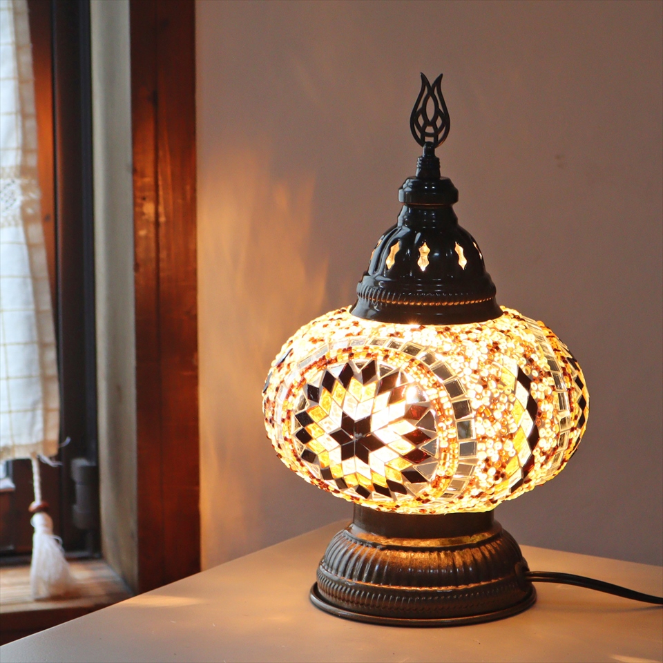 - トルコランプ モザイクテーブルランプ 直径16cm 高さ27cm アンバー