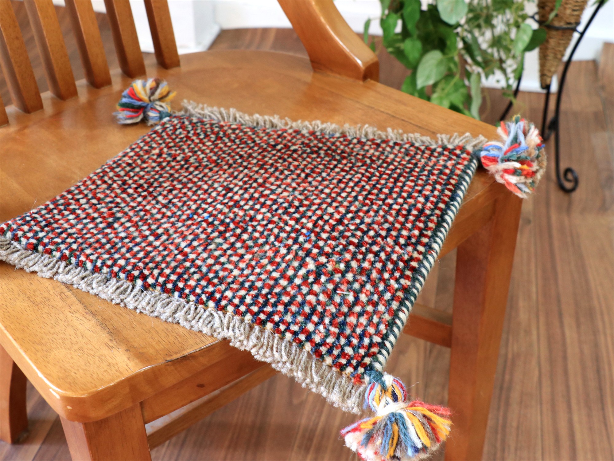 ふかふかした毛足(パイル)で、手触りが気持ちいい手織りのギャッベ。ミニサイズなので、座布団代わりに敷くのはもちろん、ダイニングチェアに敷いたり、絵画のように壁に貼ってデコレーションとしても楽しめます。手織りならではの一枚一枚違ったテイストをお楽しみください。