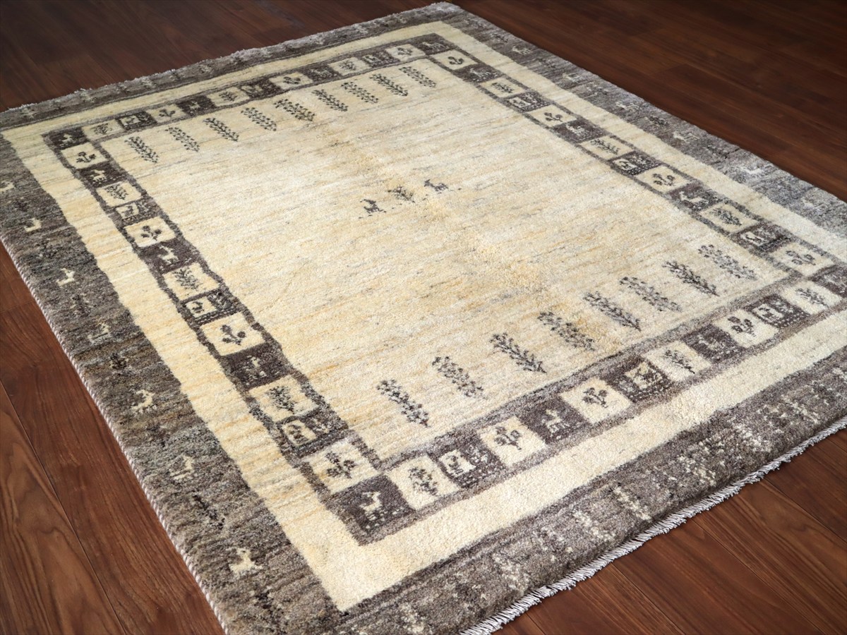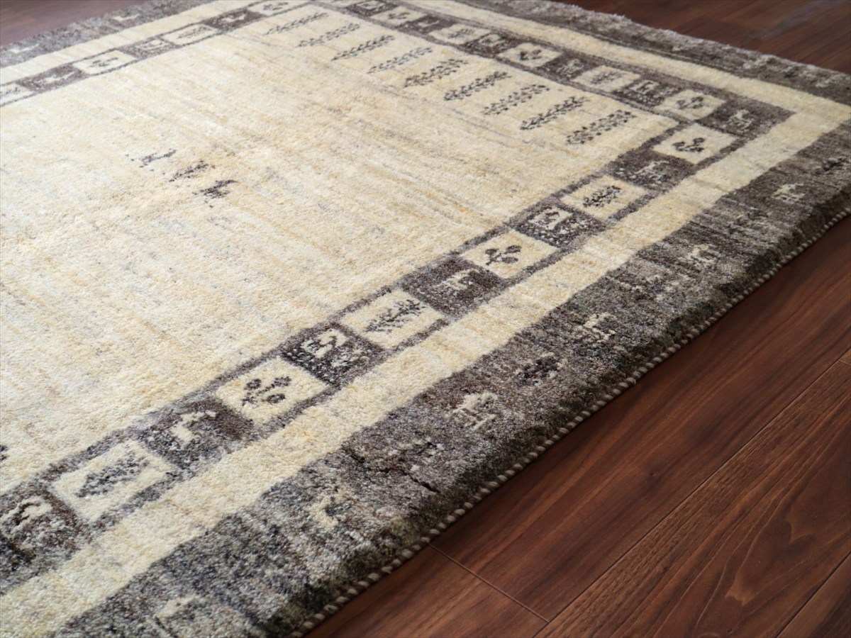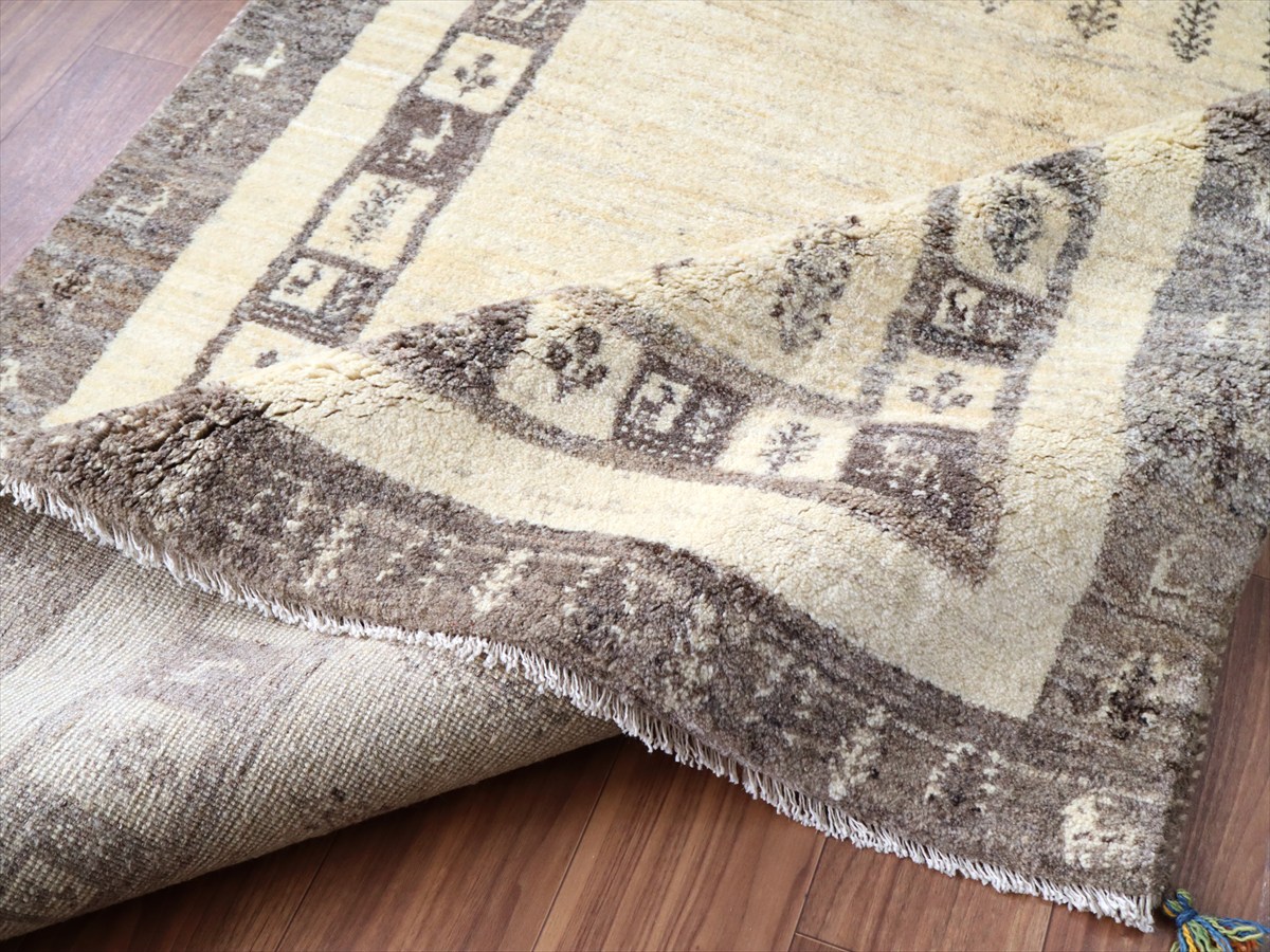 ギャッベ Gabbeh ナチュラルアイボリー 197×160cm イラン産 生命の樹と動物