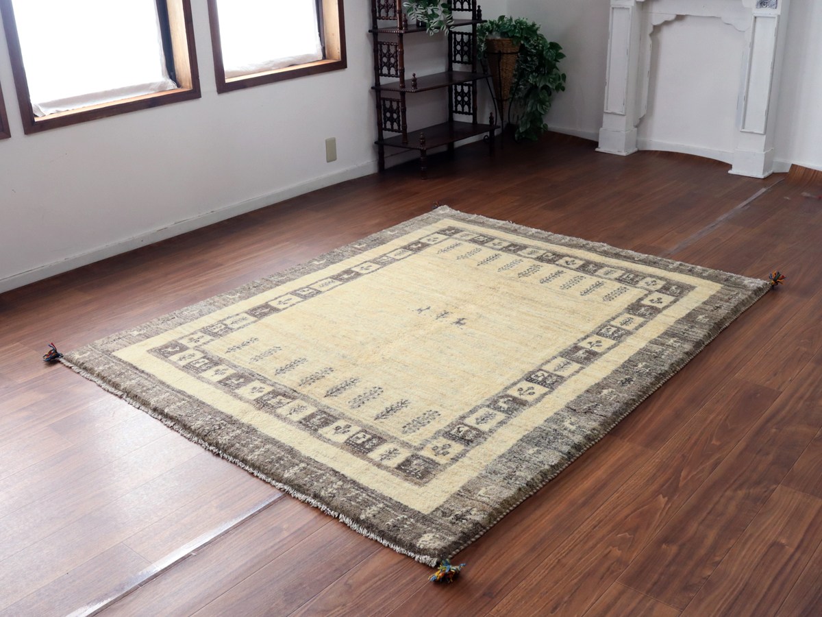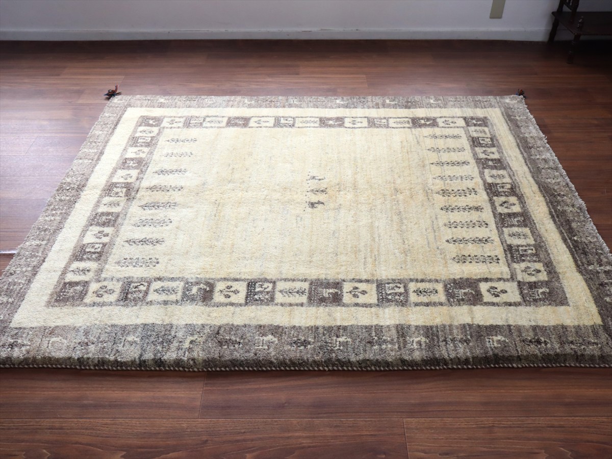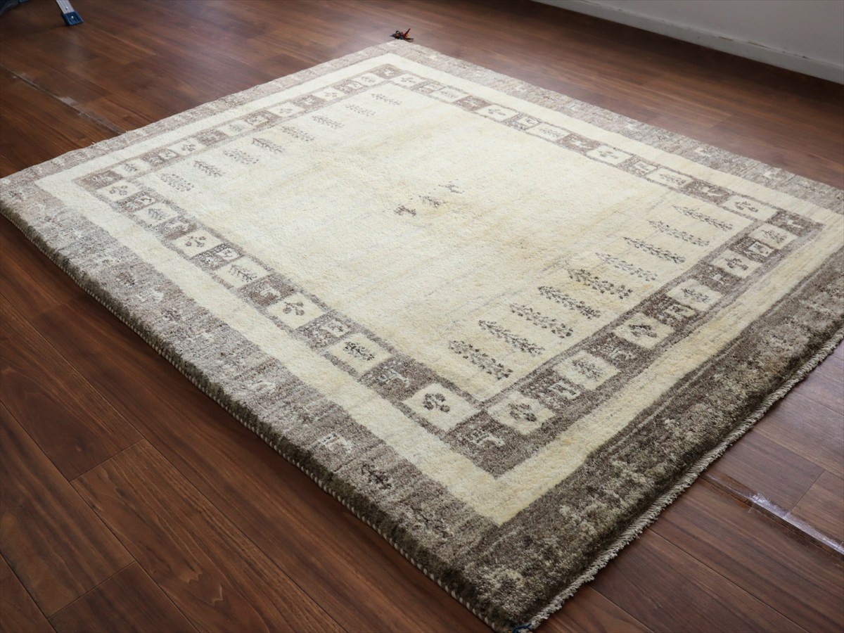 ギャッベ Gabbeh ナチュラルアイボリー 197×160cm イラン産 生命の樹と動物