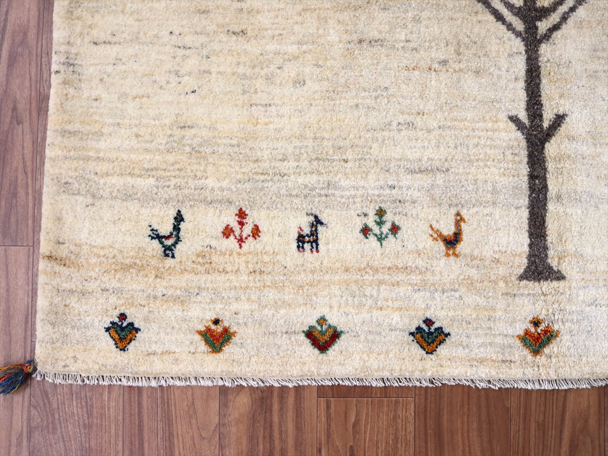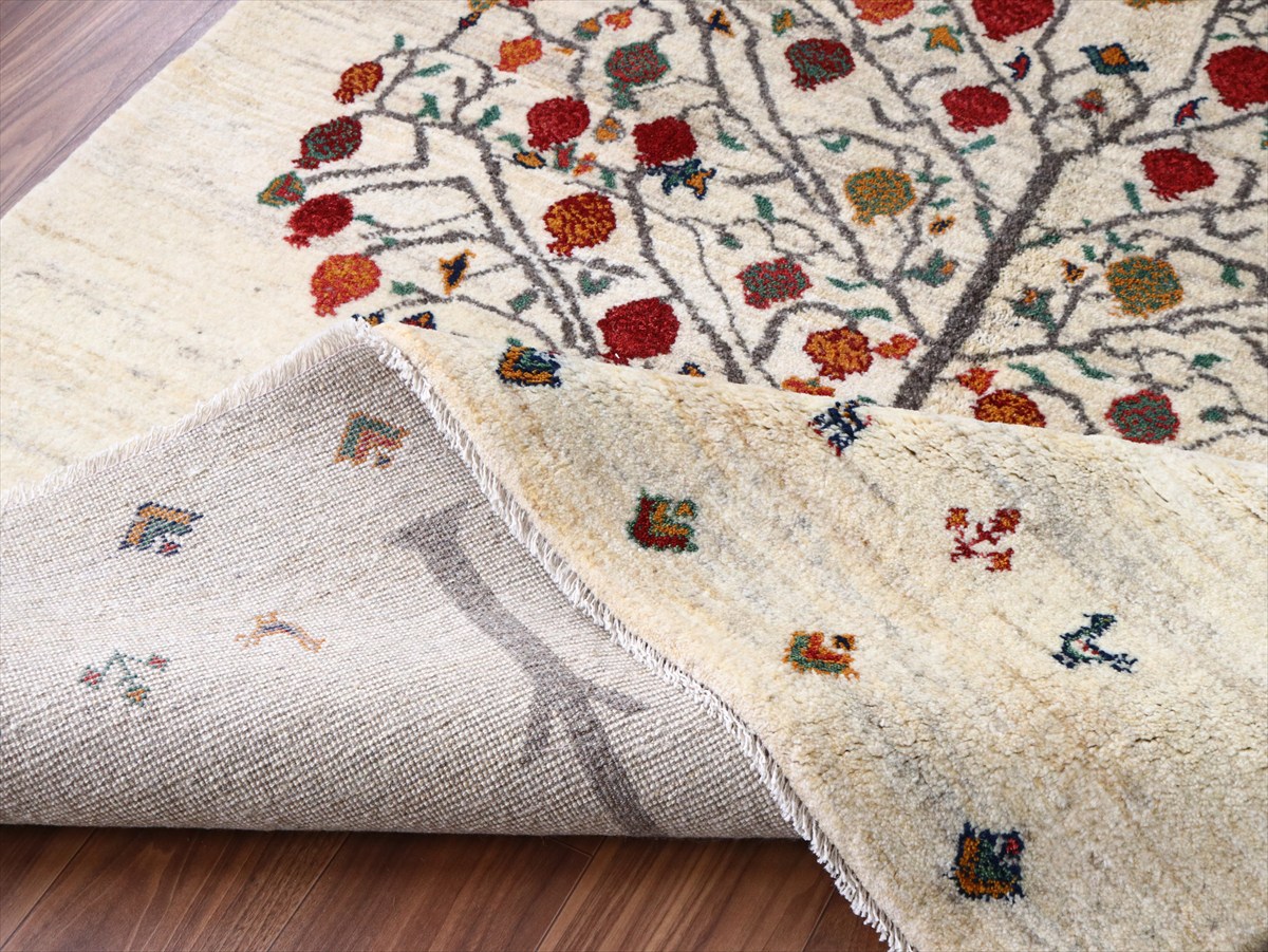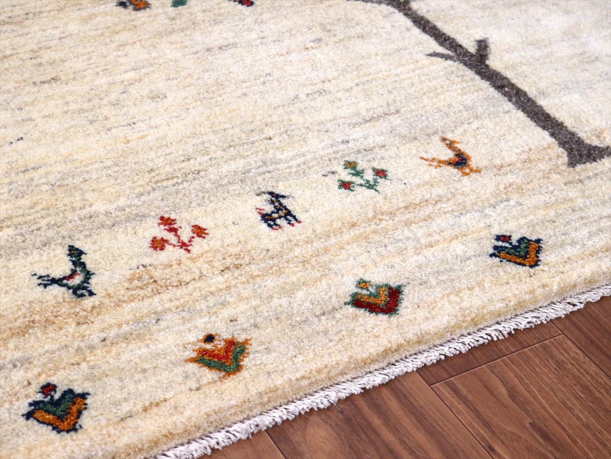 ギャッベ Gabbeh ナチュラルアイボリー 198×160cm イラン産 ザクロの樹と鳥と動物