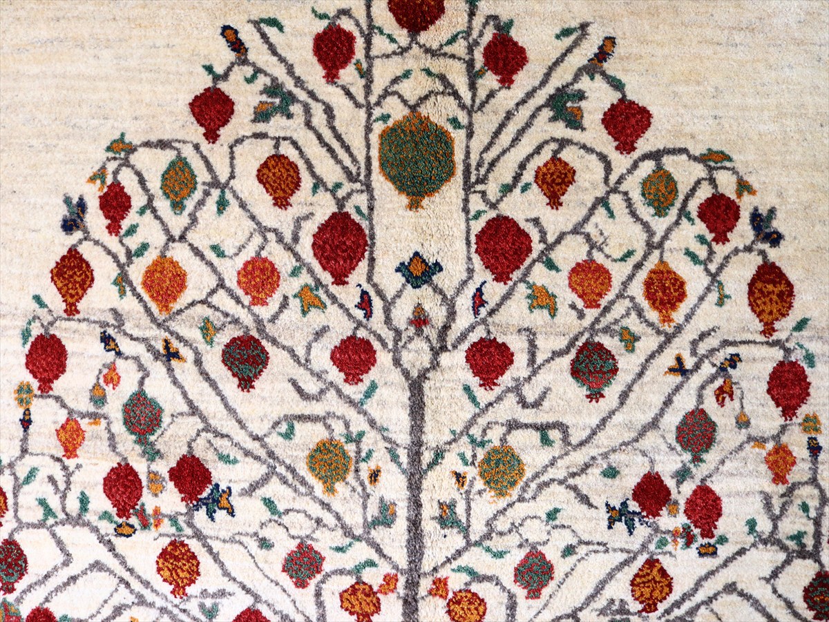 - ギャッベ Gabbeh ナチュラルアイボリー 198×160cm イラン産 ザクロの樹と鳥と動物
