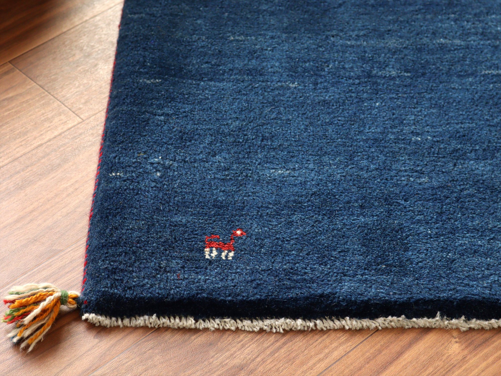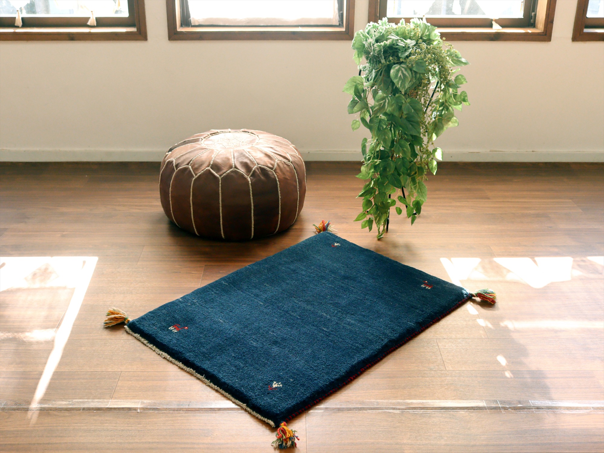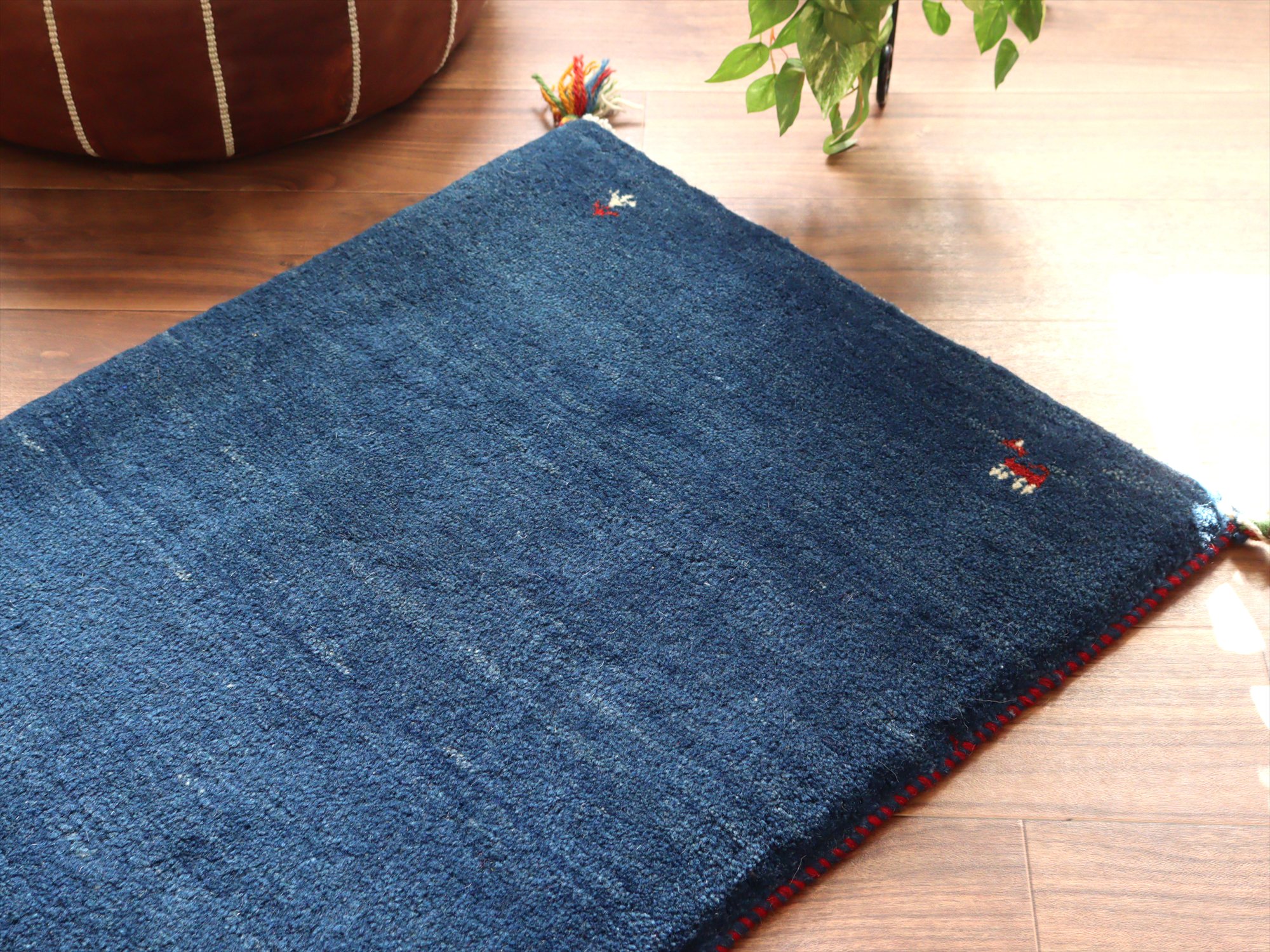 ギャッベ イラン産手織りラグ 88x65cm シンプルモチーフ ブルー