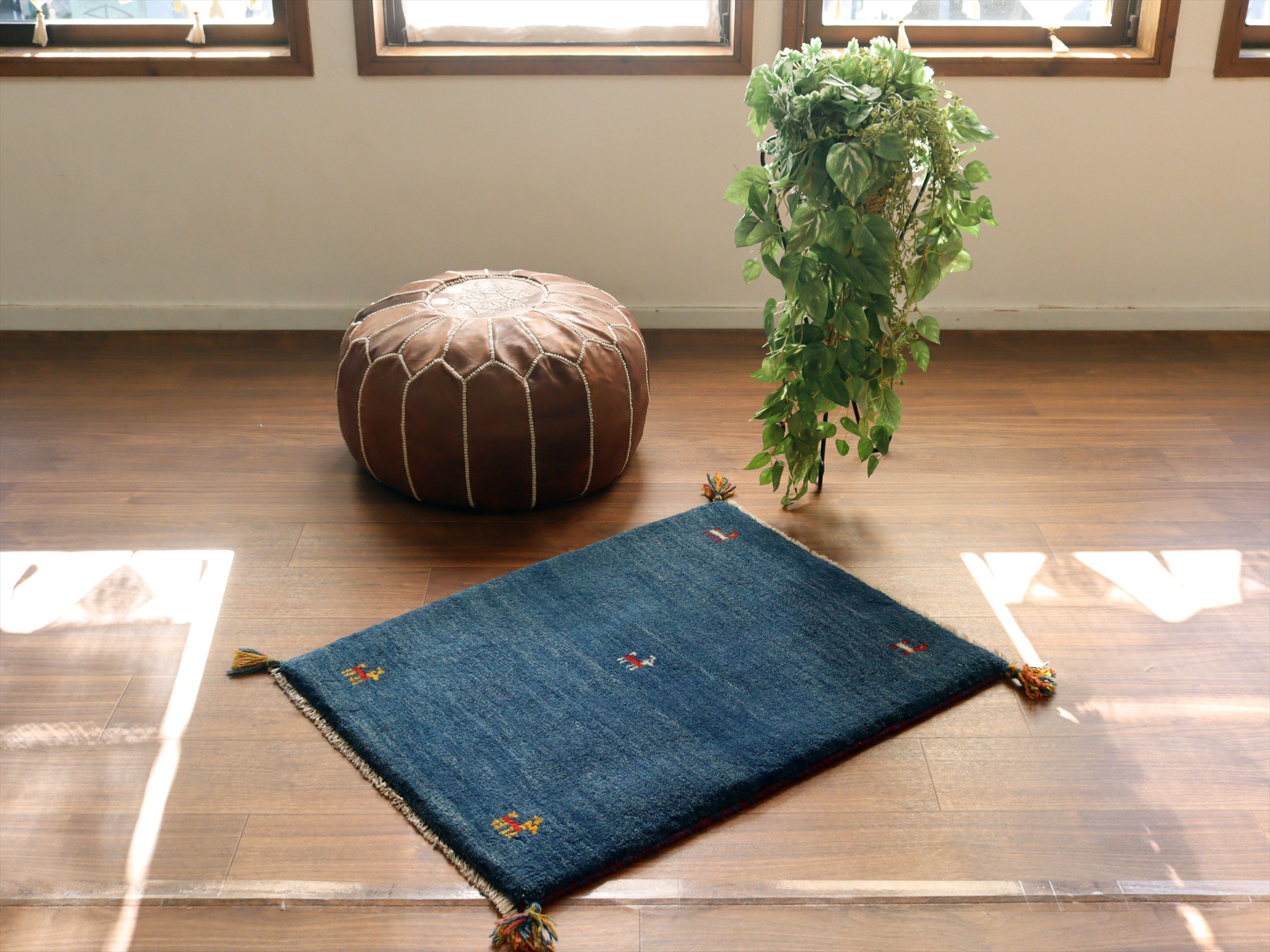 Key:ギャッベ, ギャベ, ブルー, 青, ラグ, 絨毯, イラン, シラーズ, ペルシャ, バザールギャッベ, ポンポン, 手織り, 一点もの, 玄関マット, ふかふか, Gabbeh, Tribal rug, Shiraz, Fars, Iran, Persia, Wool, 一点もの, 現品販売,ガラタバザール