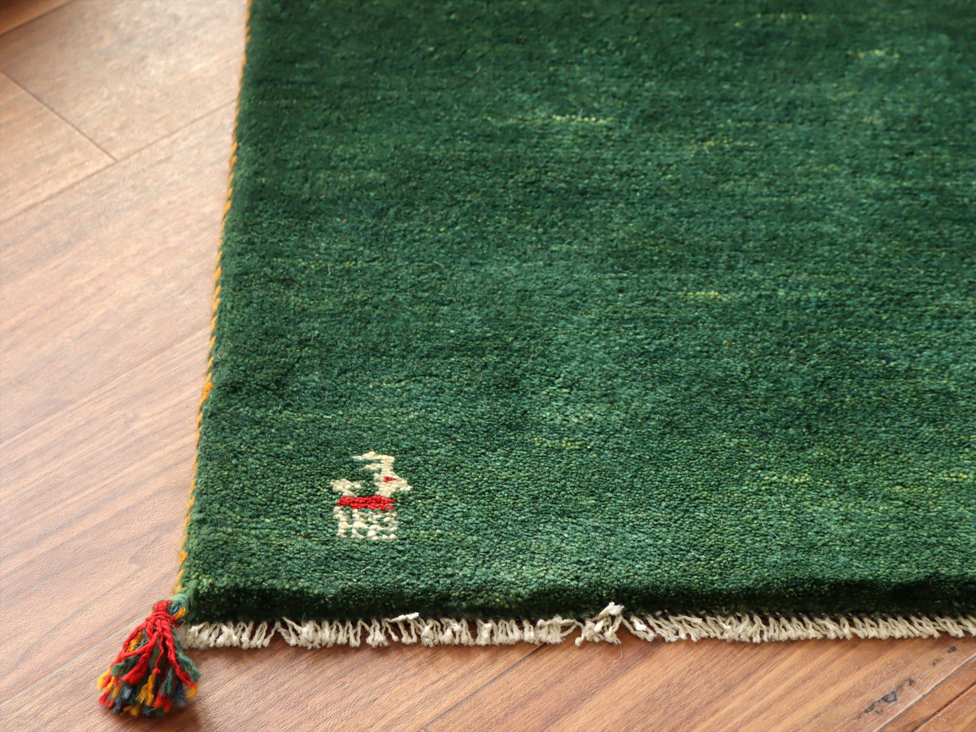 - ギャッベ イラン産手織りラグ 88x60cm グリーン シンプルモチーフ