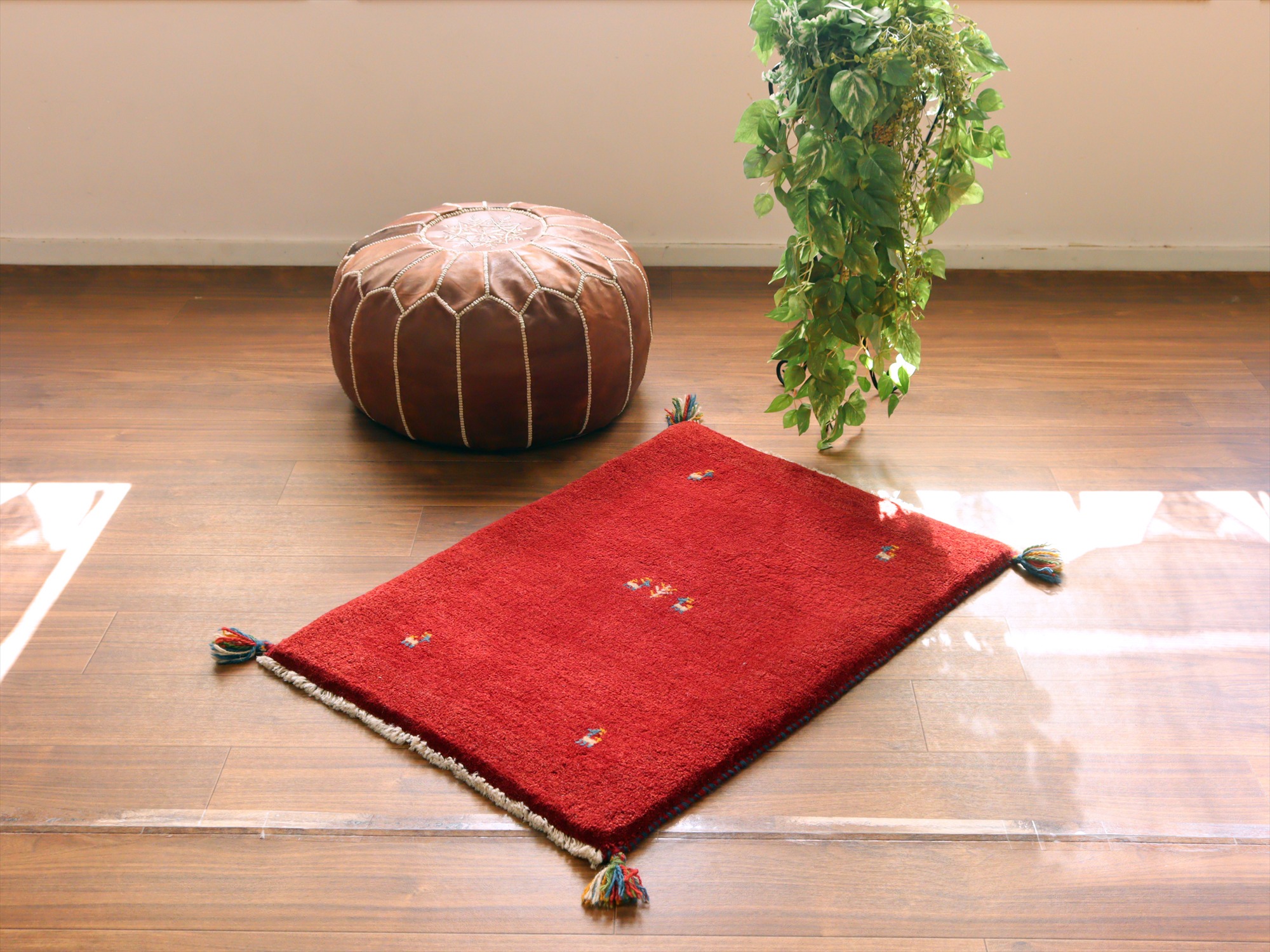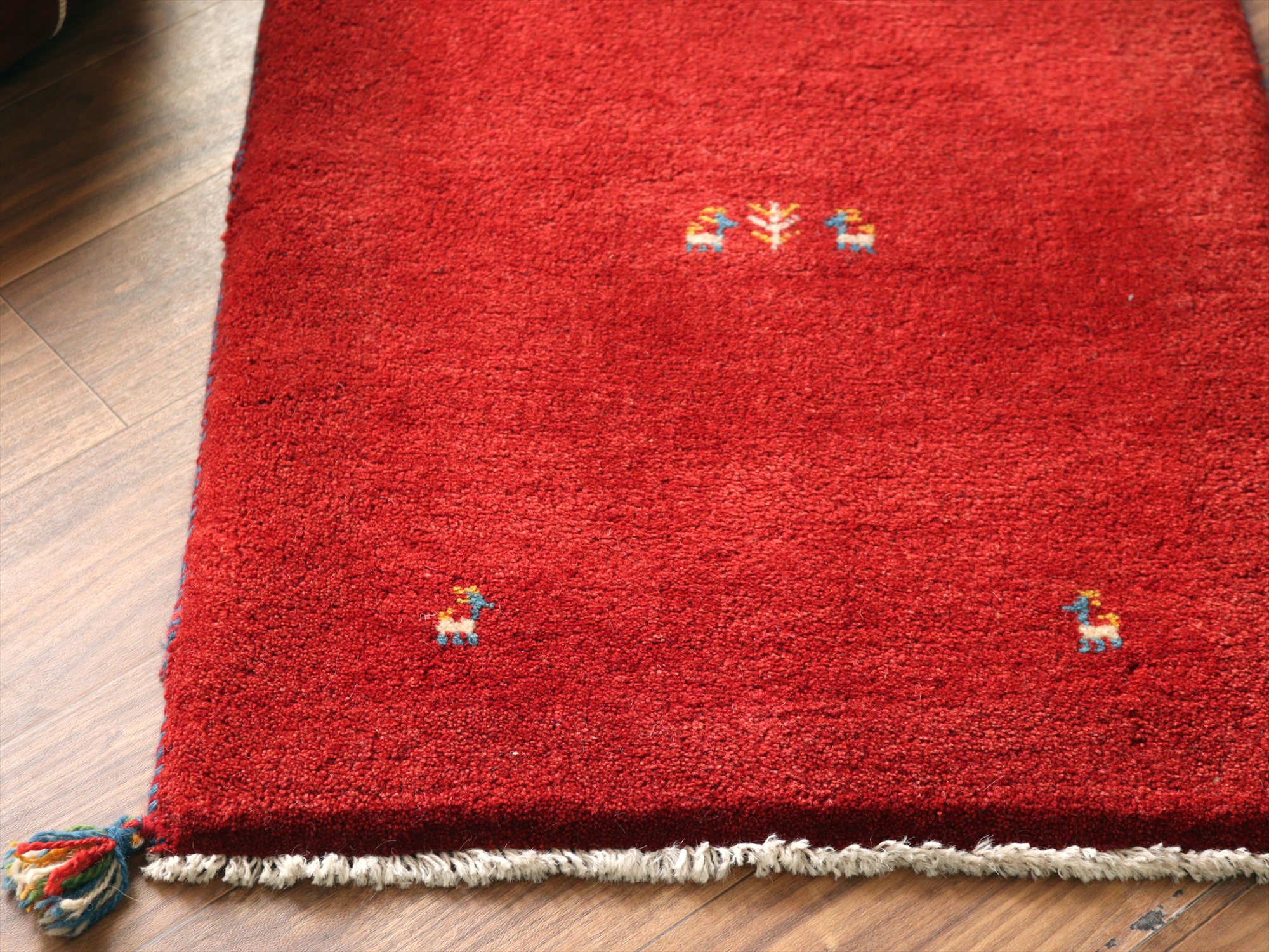 ギャッベ イラン産手織りラグ 90x64cm シンプルデザイン レッド