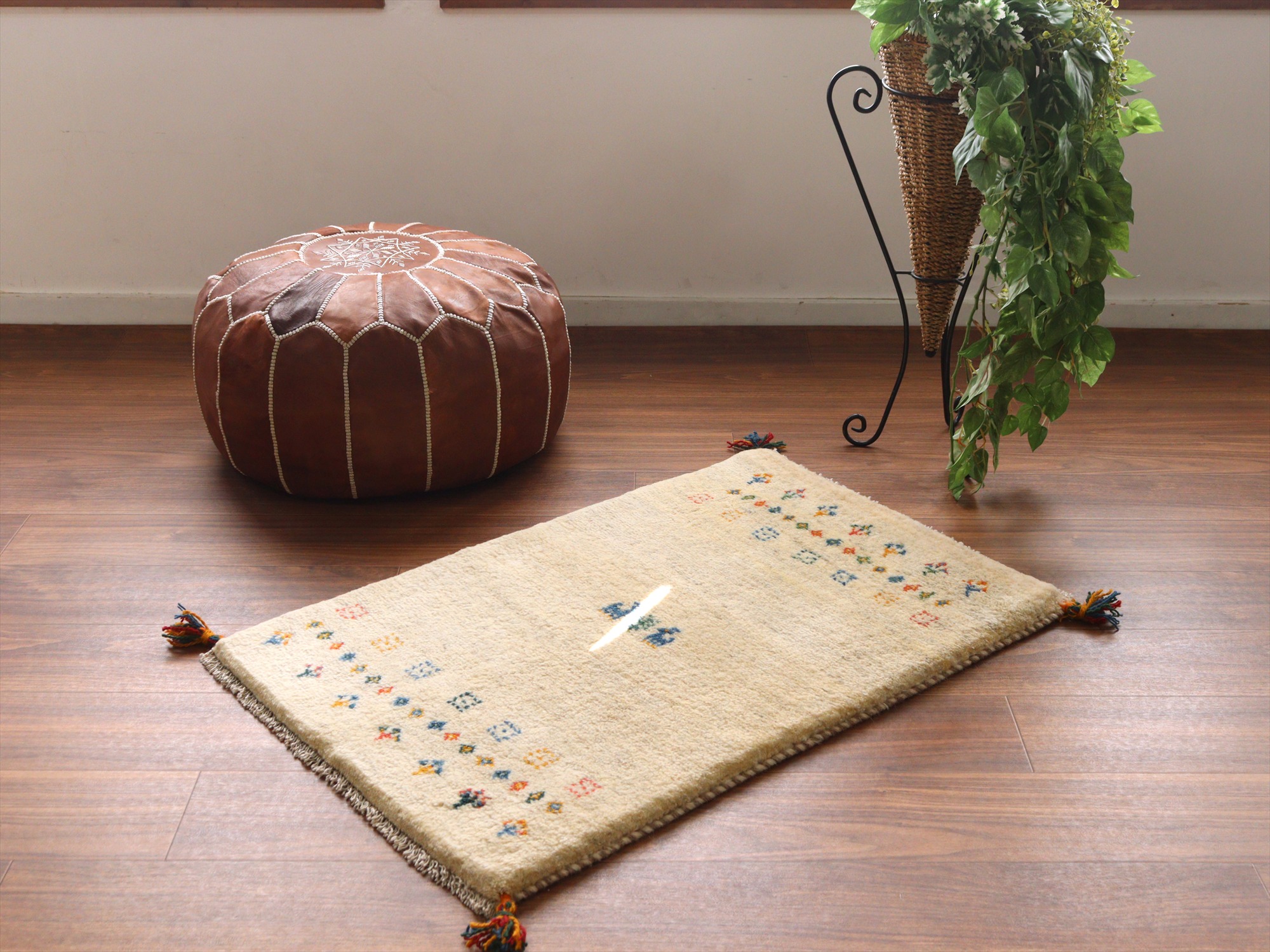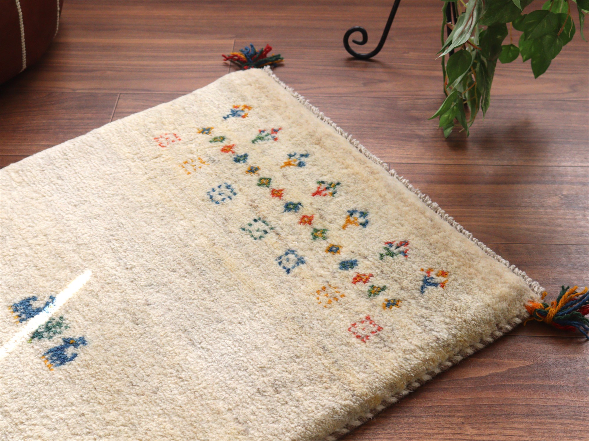 ギャッベ イラン産手織りラグ 92x60cm 動物と植物 アイボリー