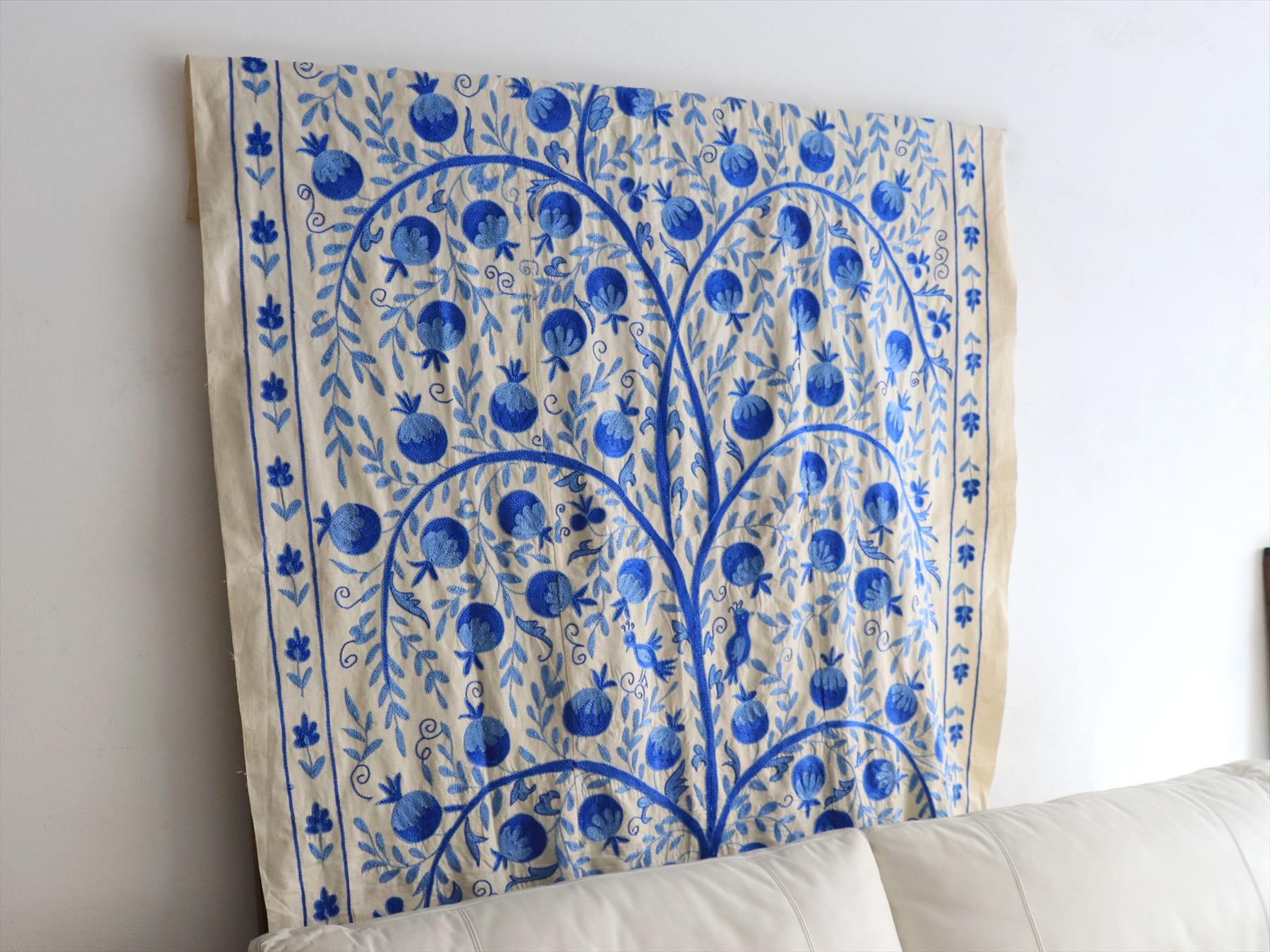 スザンニ刺繍布 ウズベキスタン194×144cm ザクロの実のなる生命の木