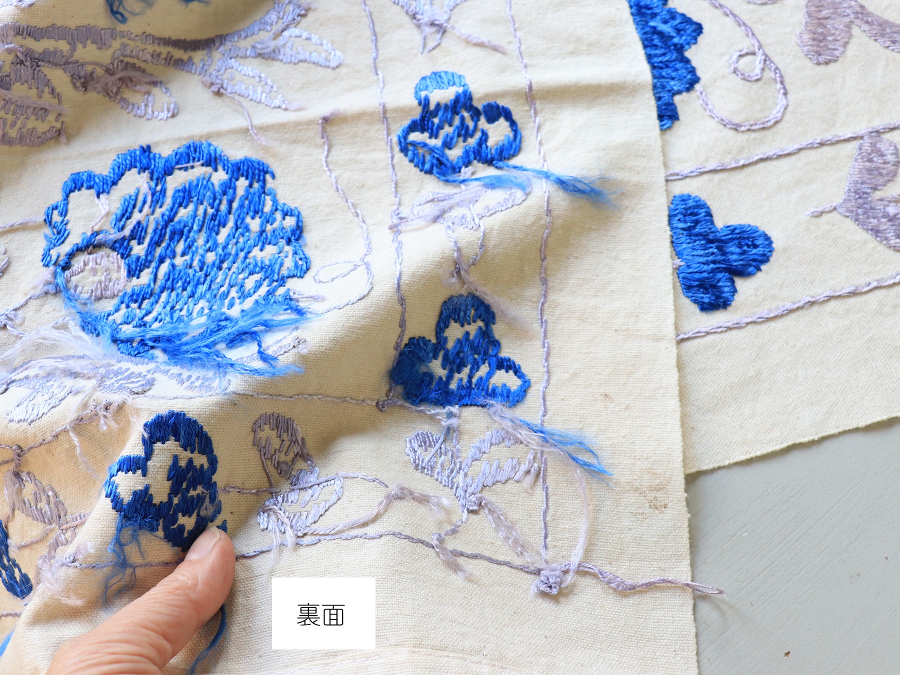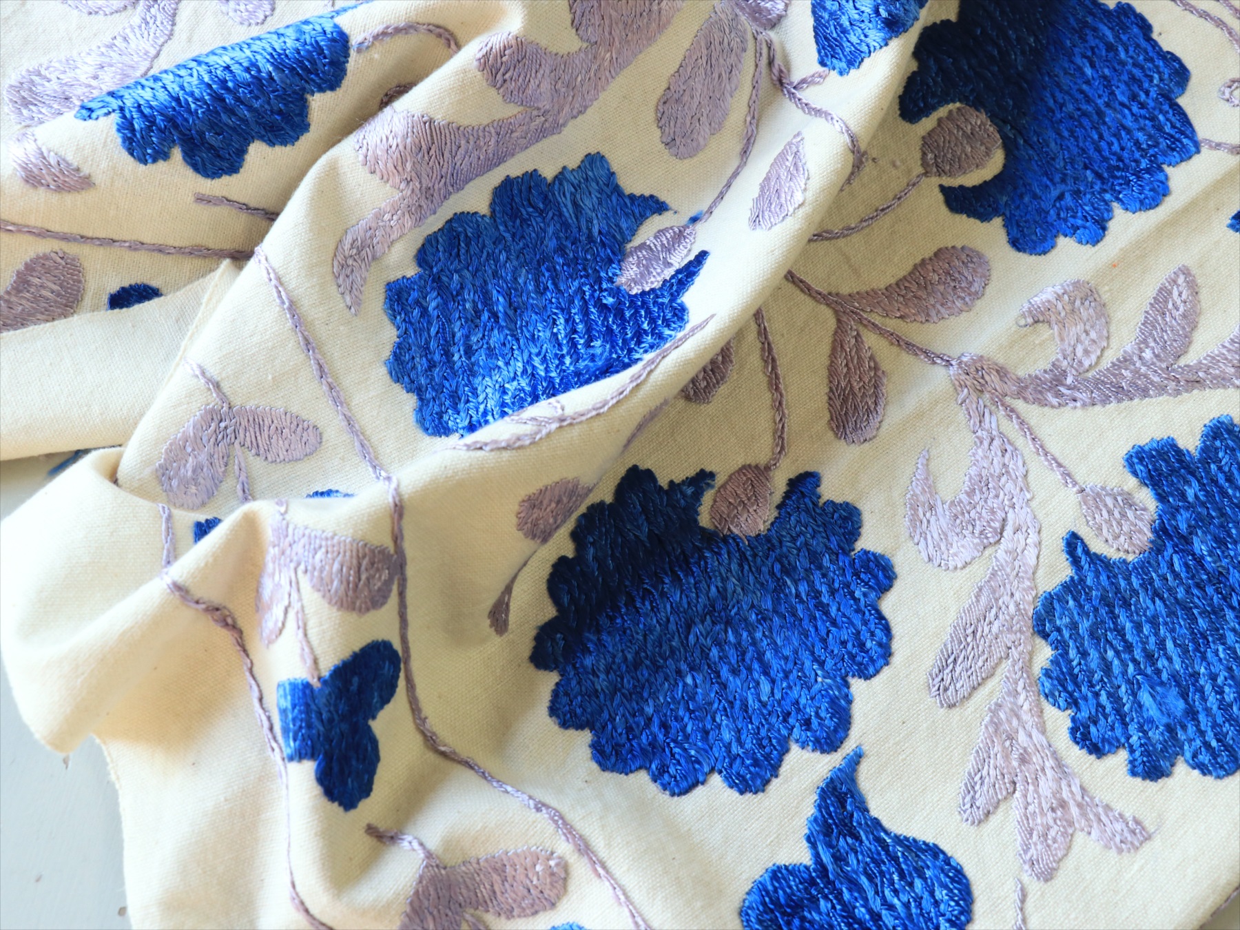 素 材コットン地にシルクの刺繍糸