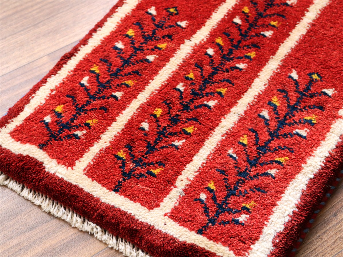 ギャッベ ミニギャベ イラン産 58×42cm レッド 連なる生命の樹と動物
