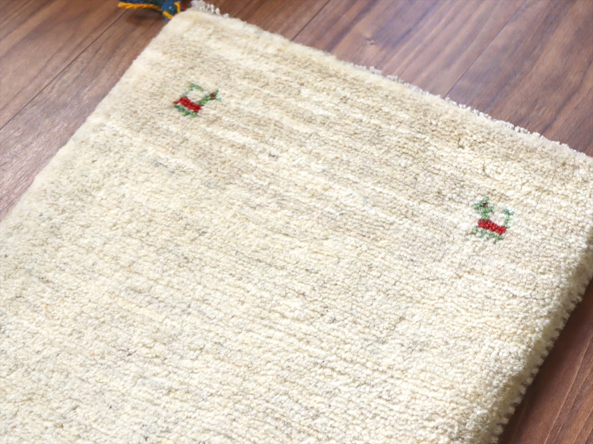 ギャッベ ミニギャベ イラン産 61×44cm ナチュラルアイボリー 四隅に動物